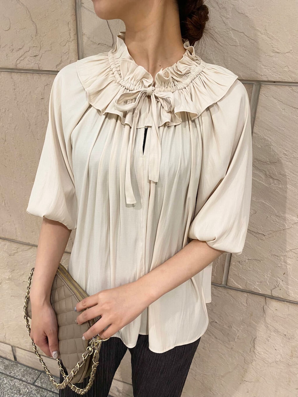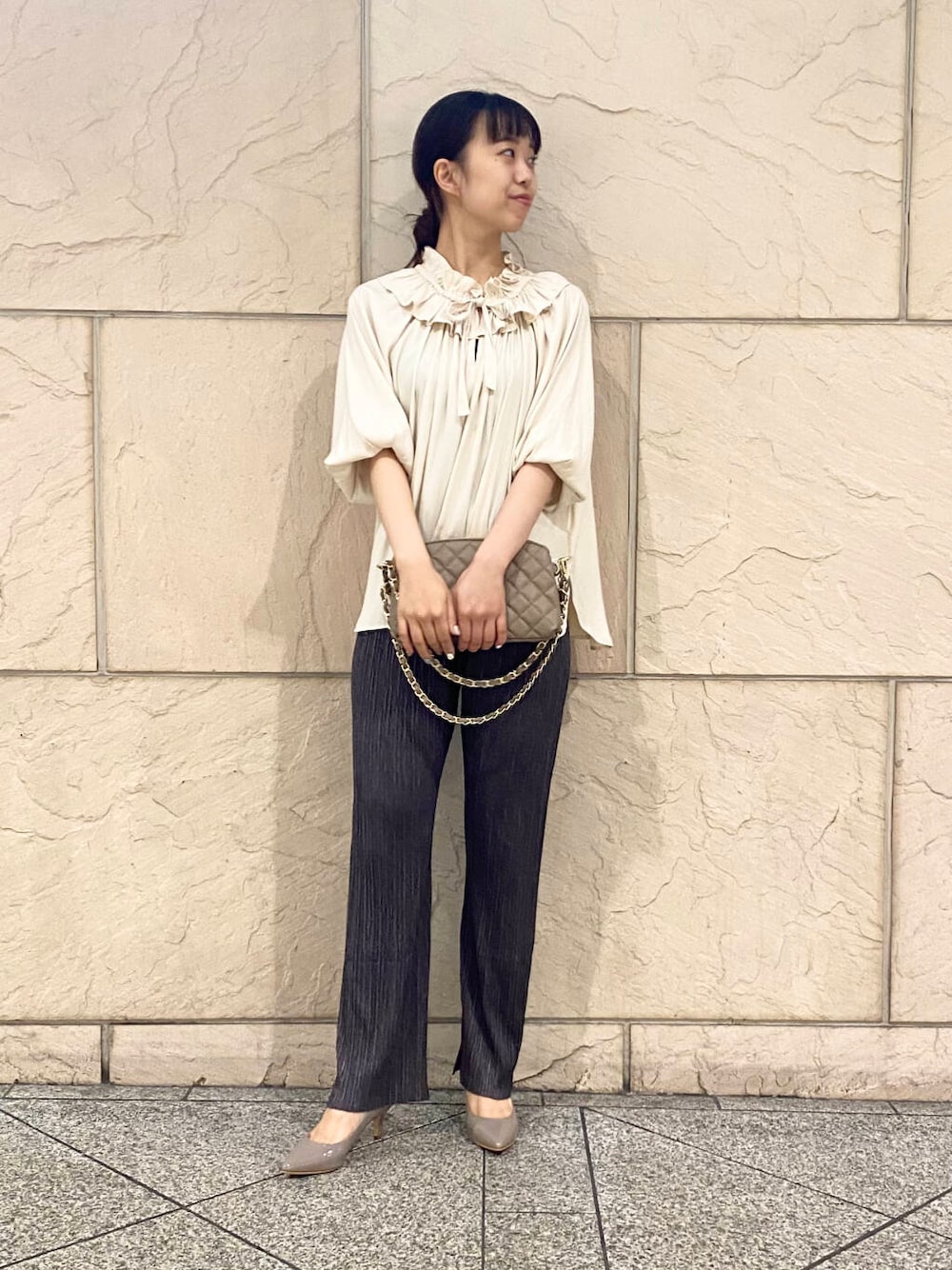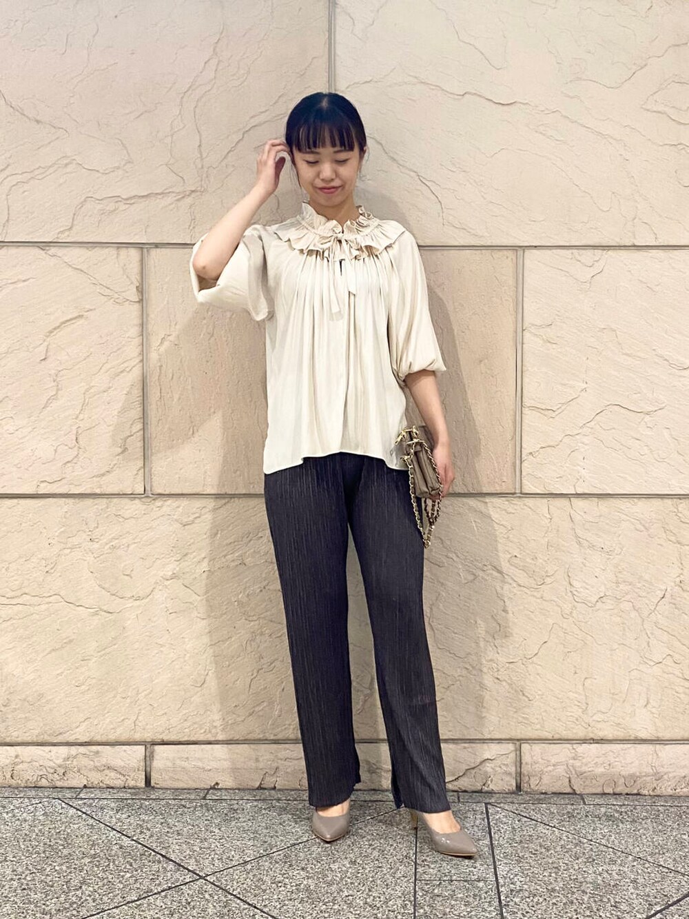 甘めブラウスをパンツで大人に着こなしました✴︎