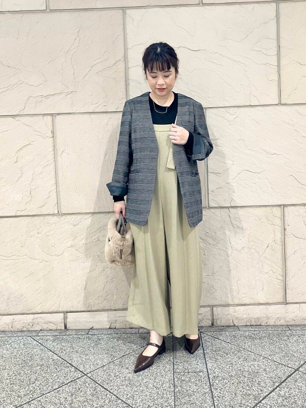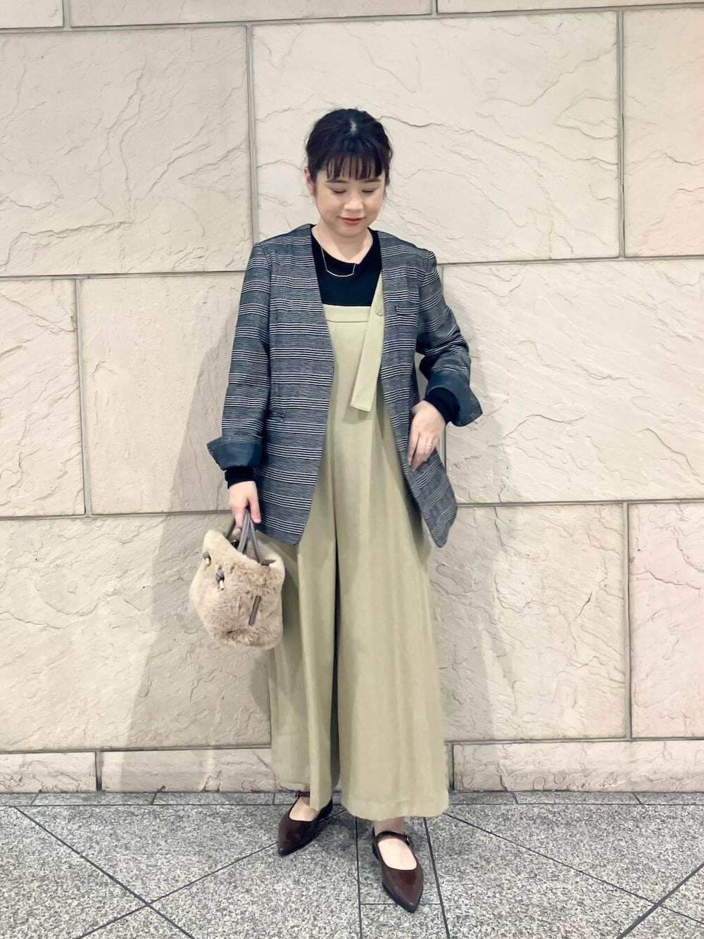 ジャケットはノーカラーなので主張しすぎず普段はもちろんブラウス等を合わせてお仕事でも着用できます!