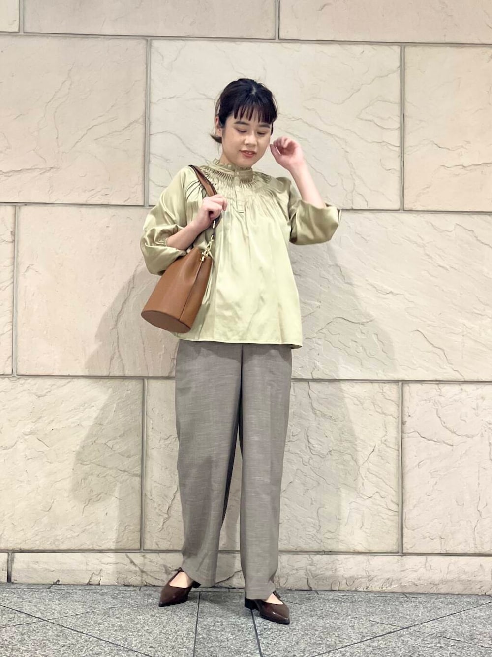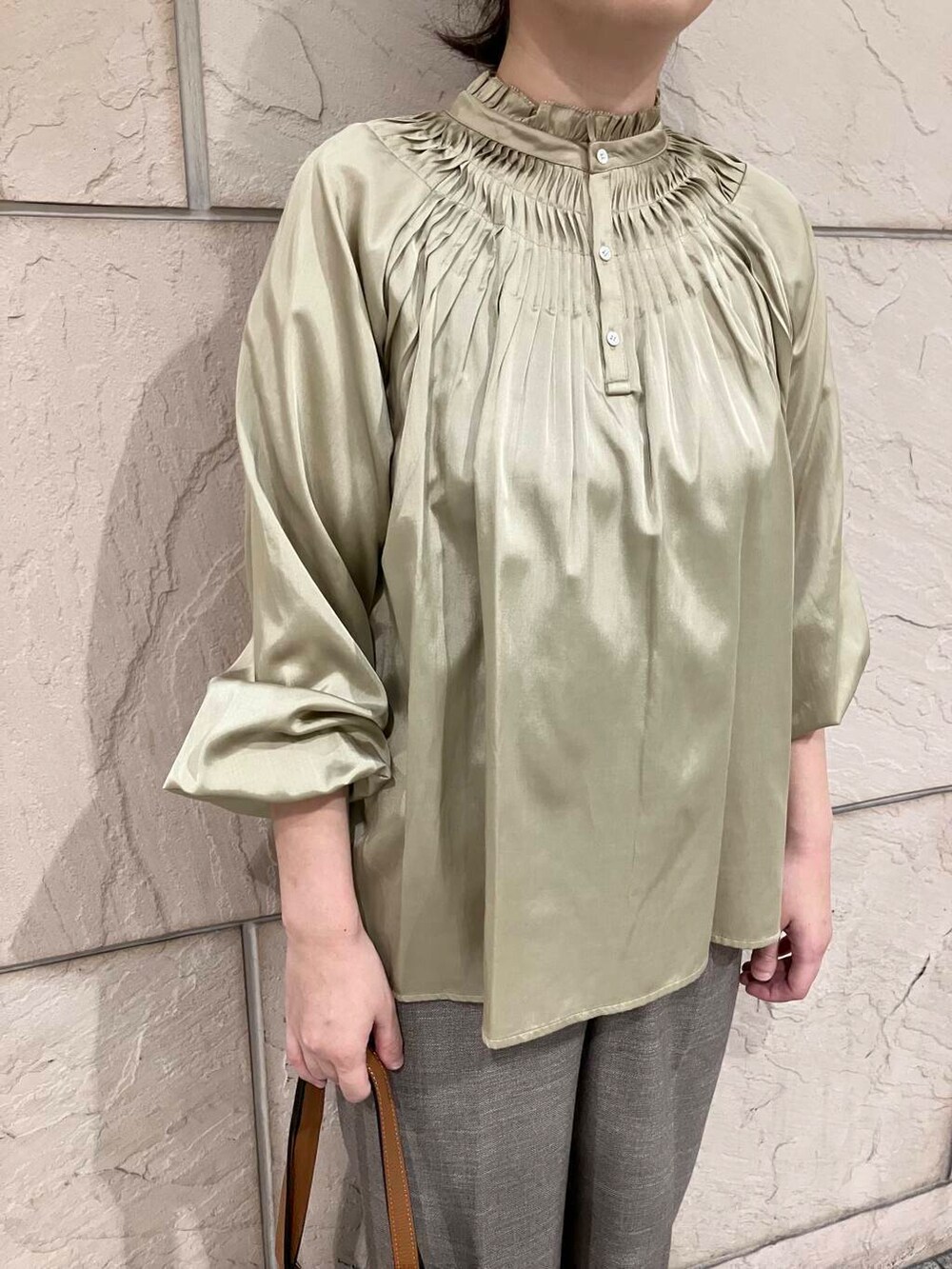 ブラウスは光沢があり1着で華やかに着ていただけます。オフィスでも◎