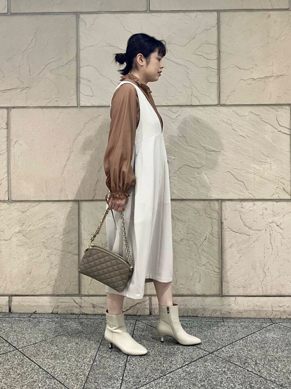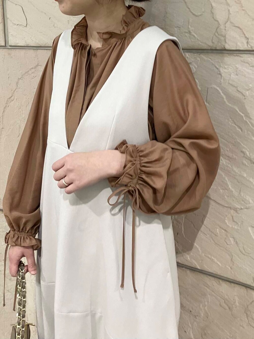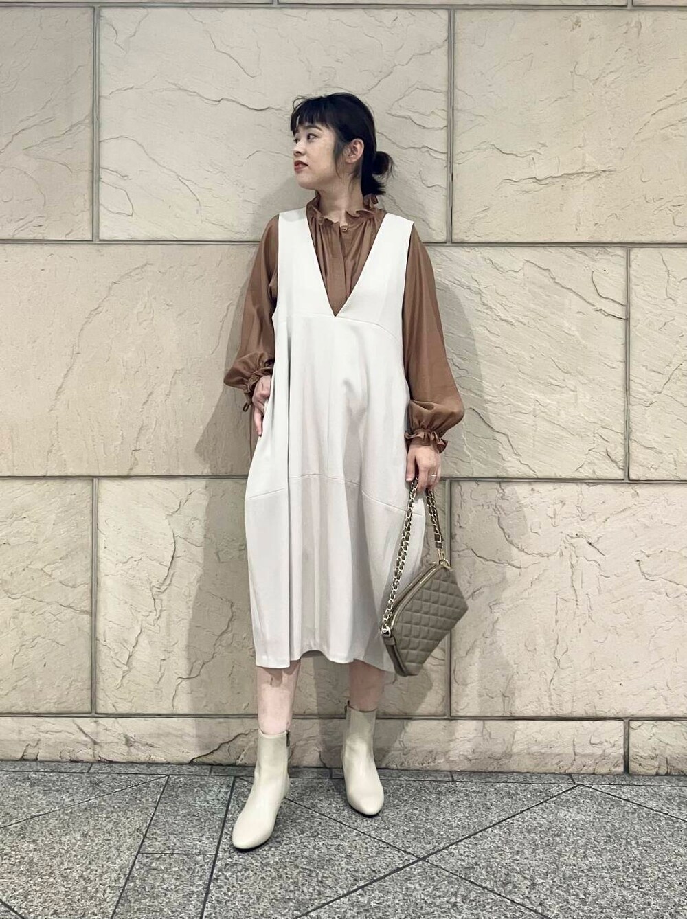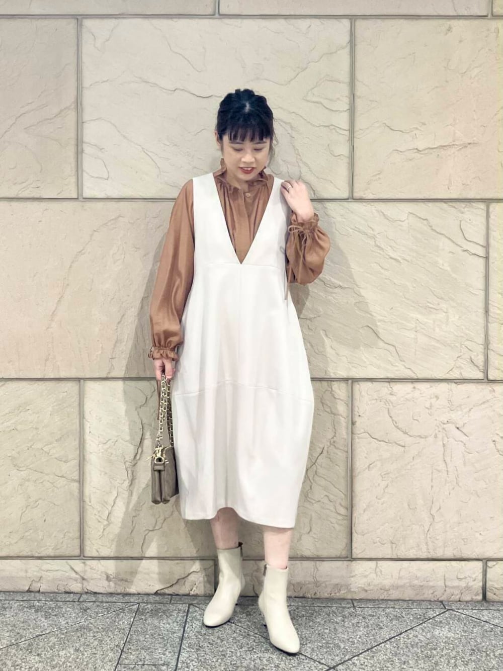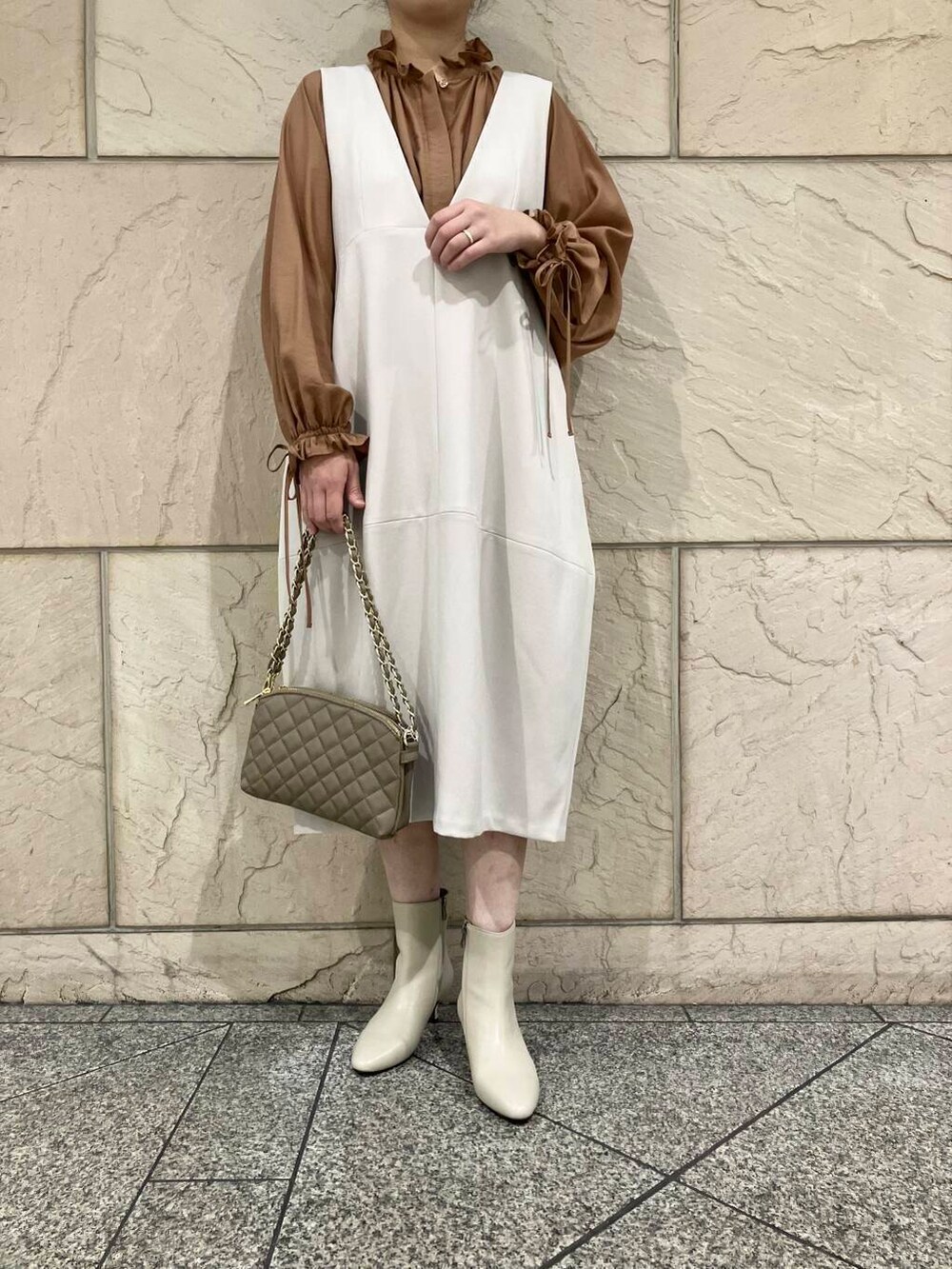 L/GREIGEは真っ白すぎず温かみのあるカラーなのでカラー物のインナーとも相性バッチリてす◎