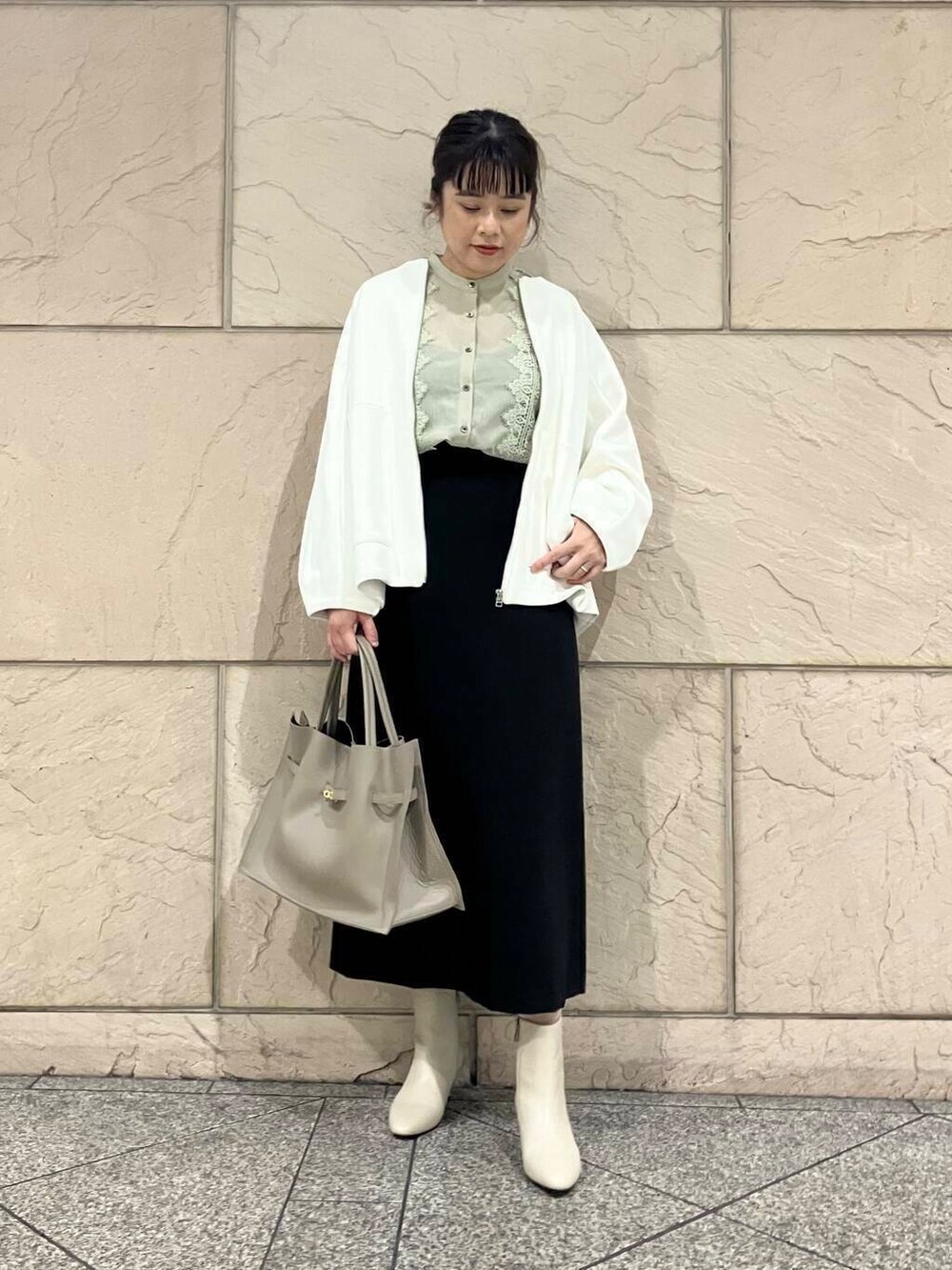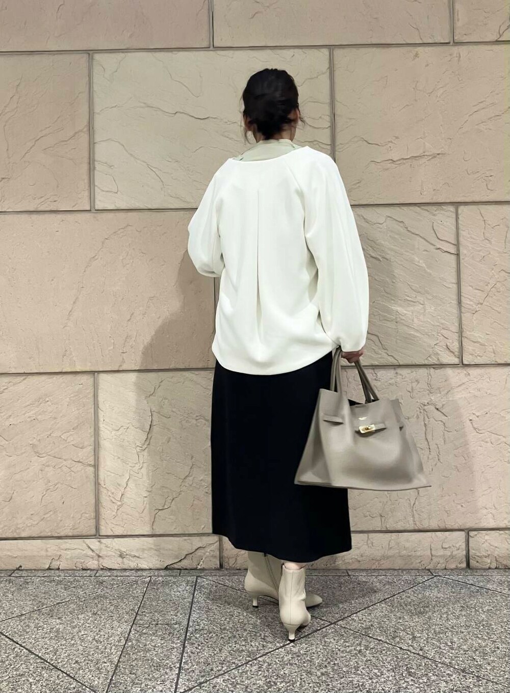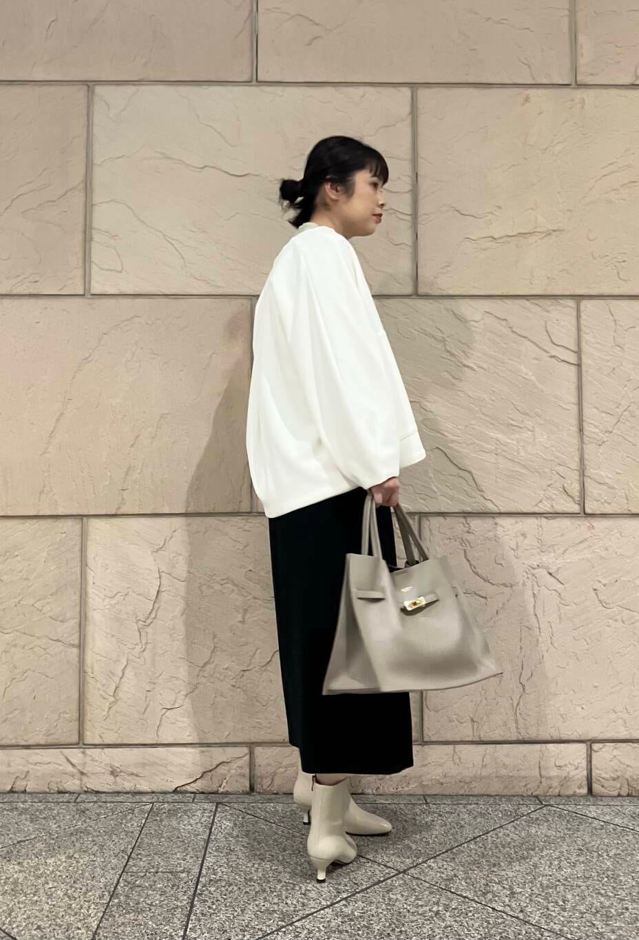 ダンボールミドルコートは丸いフォルムが綺麗でノーカラーなので寒くなればタートルやストールも巻きやすくコーディネートしやすいです◎