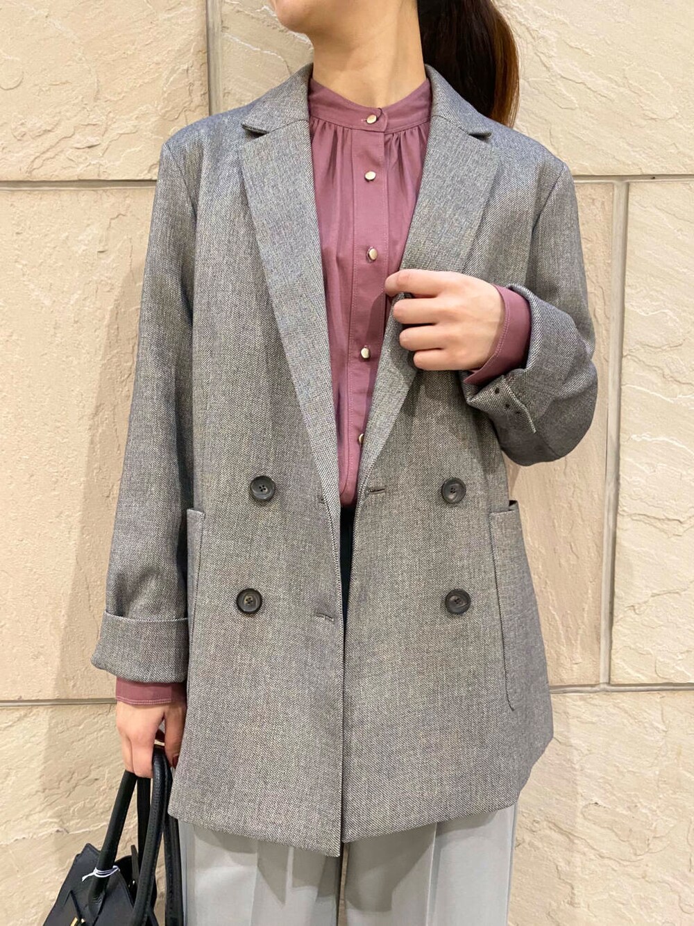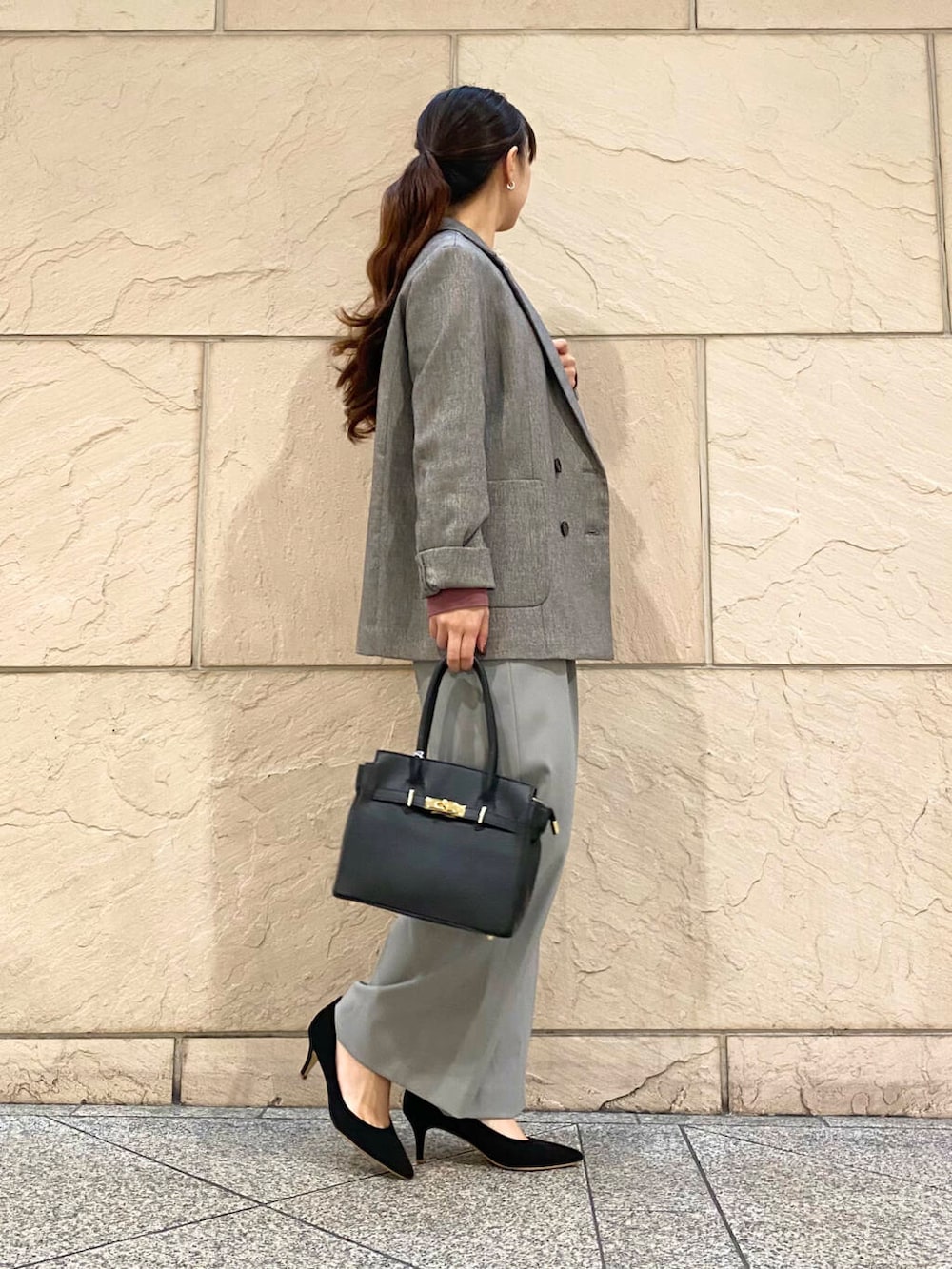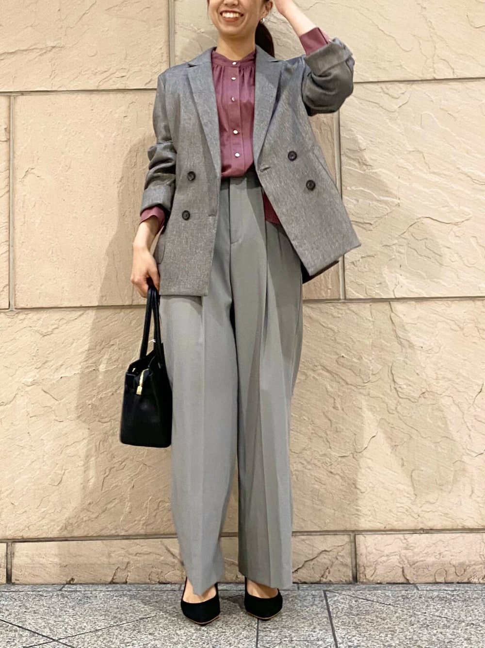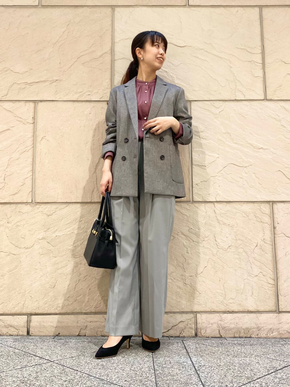 グレーのジャケットにグレーのパンツでシックなイメージですが