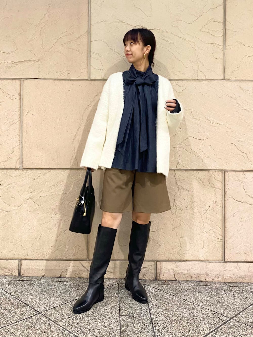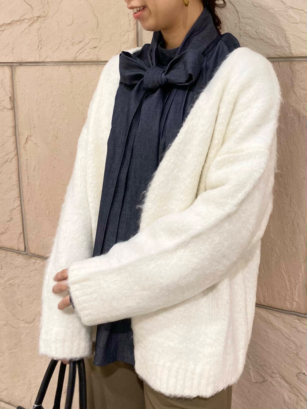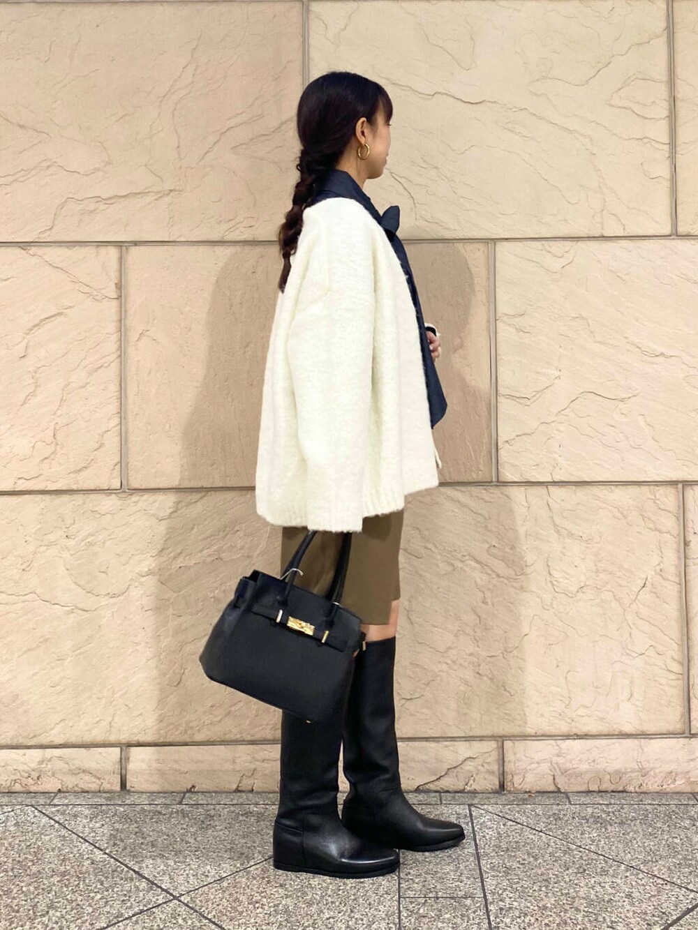 女性らしさちょいプラスでふわもこカーデと一緒に着てます☁️