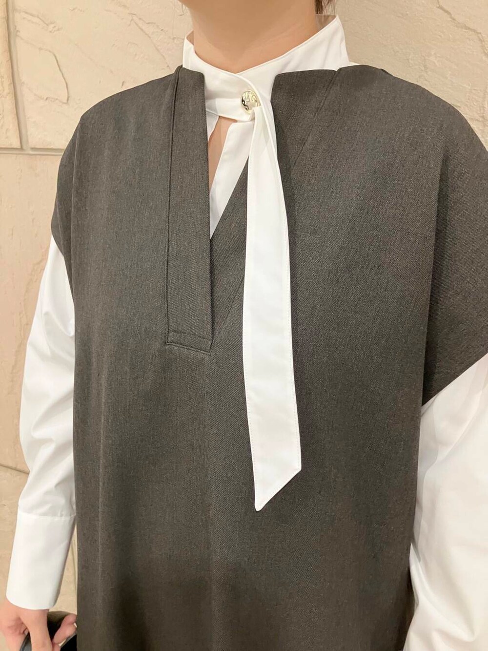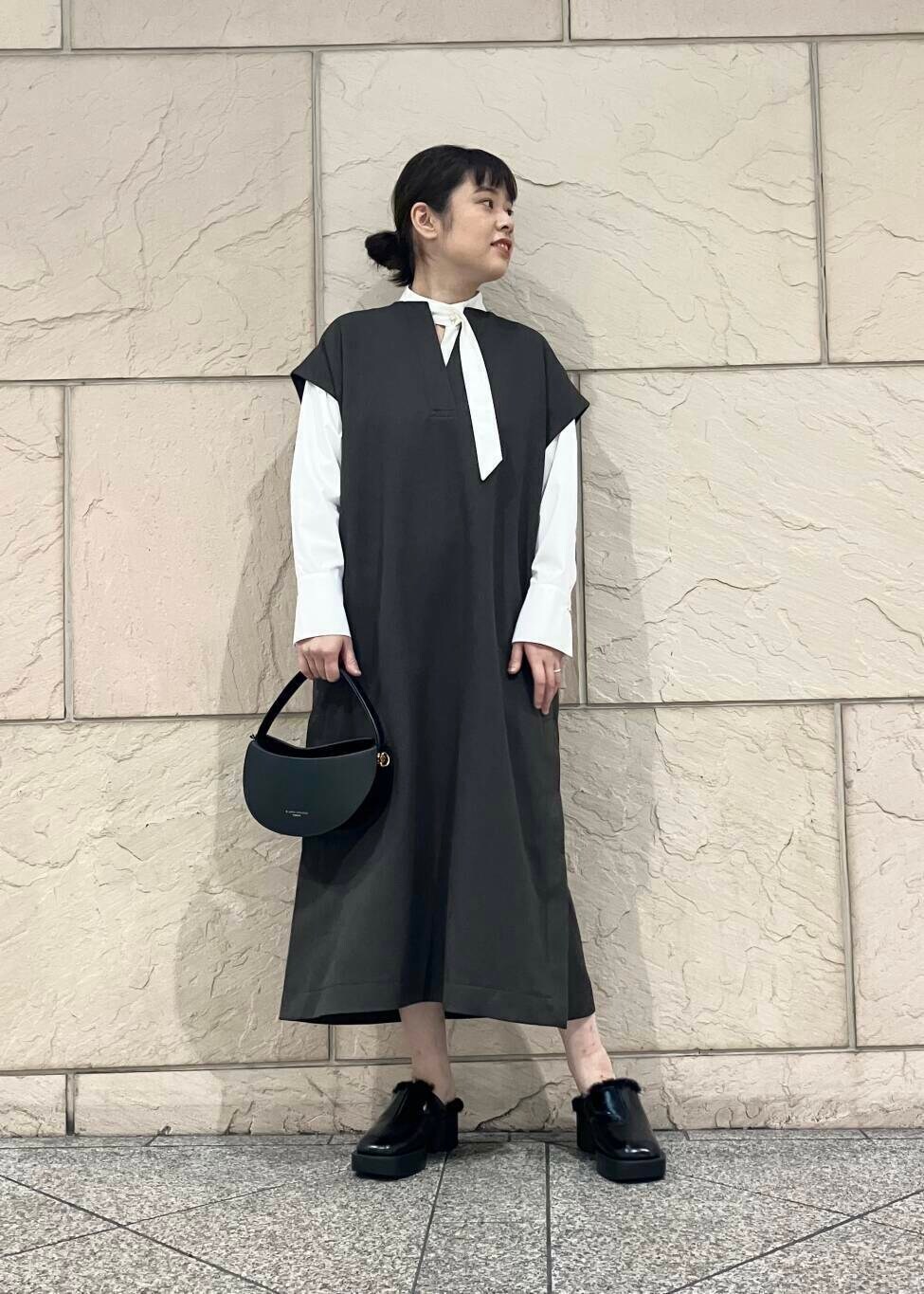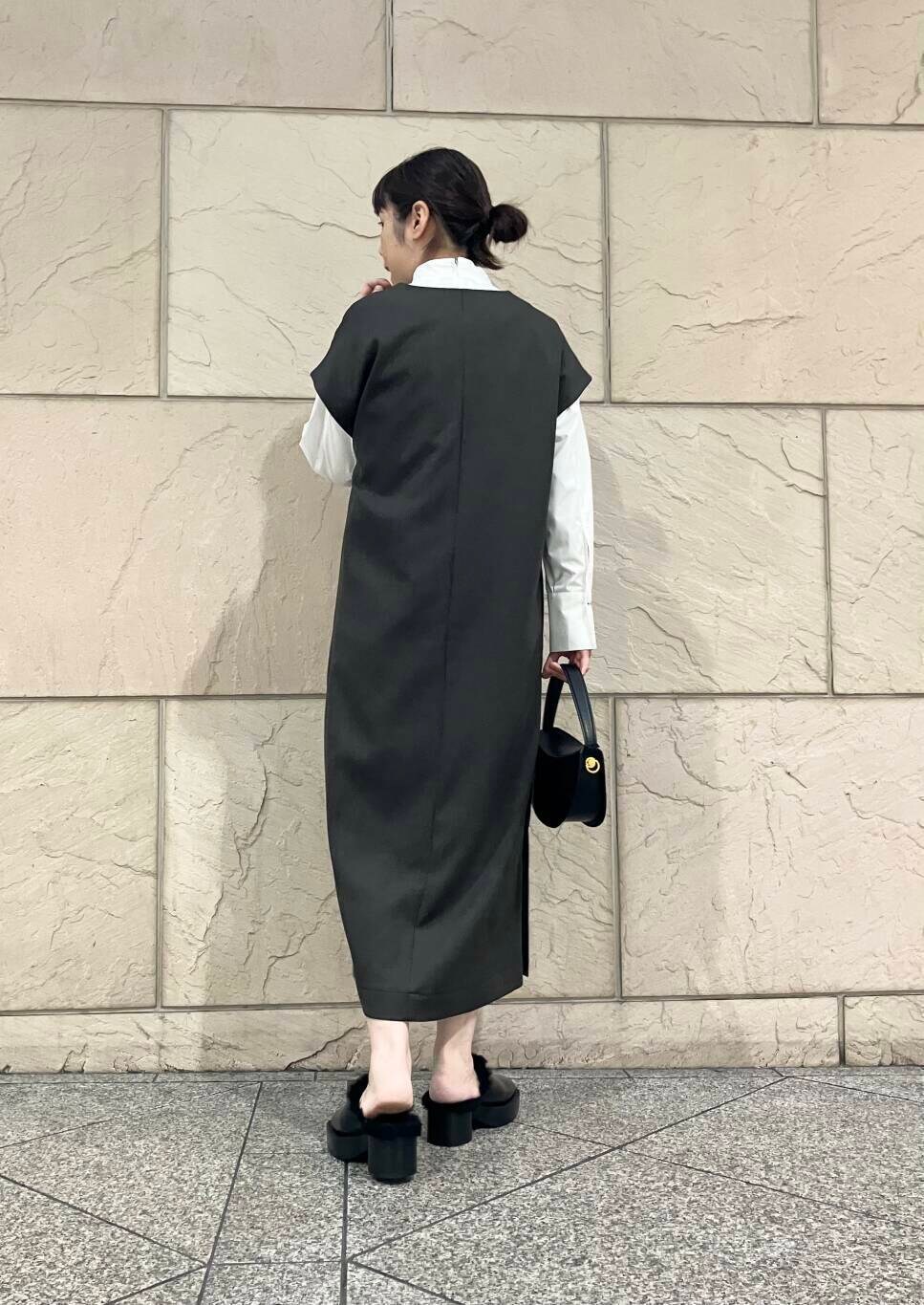 ロングベストワンピースはインナー次第で雰囲気変えていただけますよ!
