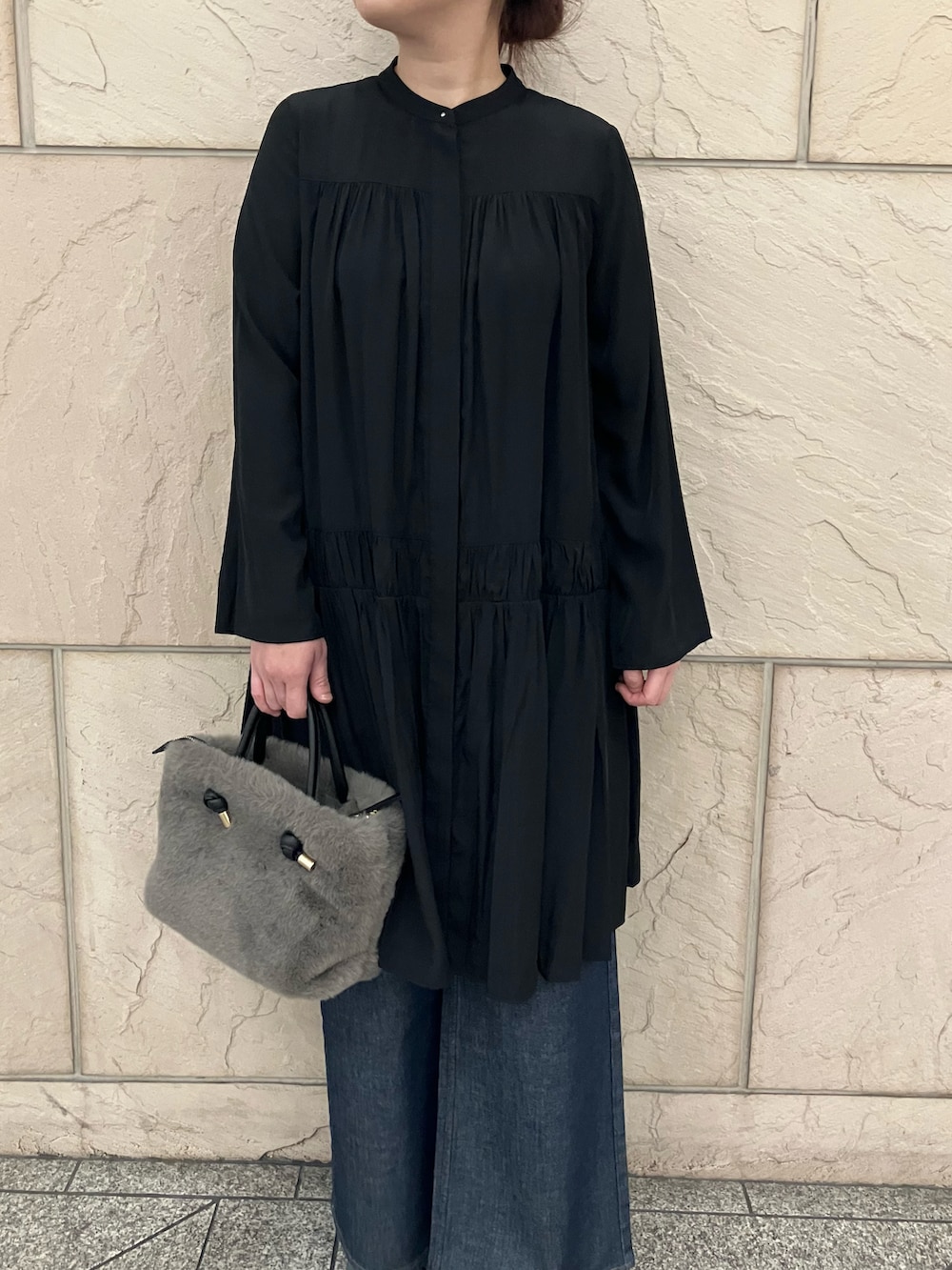 ギャザーが細かくポリエステル、レーヨンなので肌触りも良いです!体型カバーにもなるので幅広いご年齢層の方に店頭ではすでに人気商品です♪