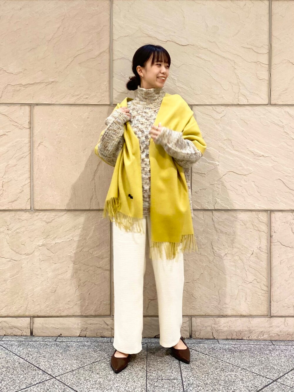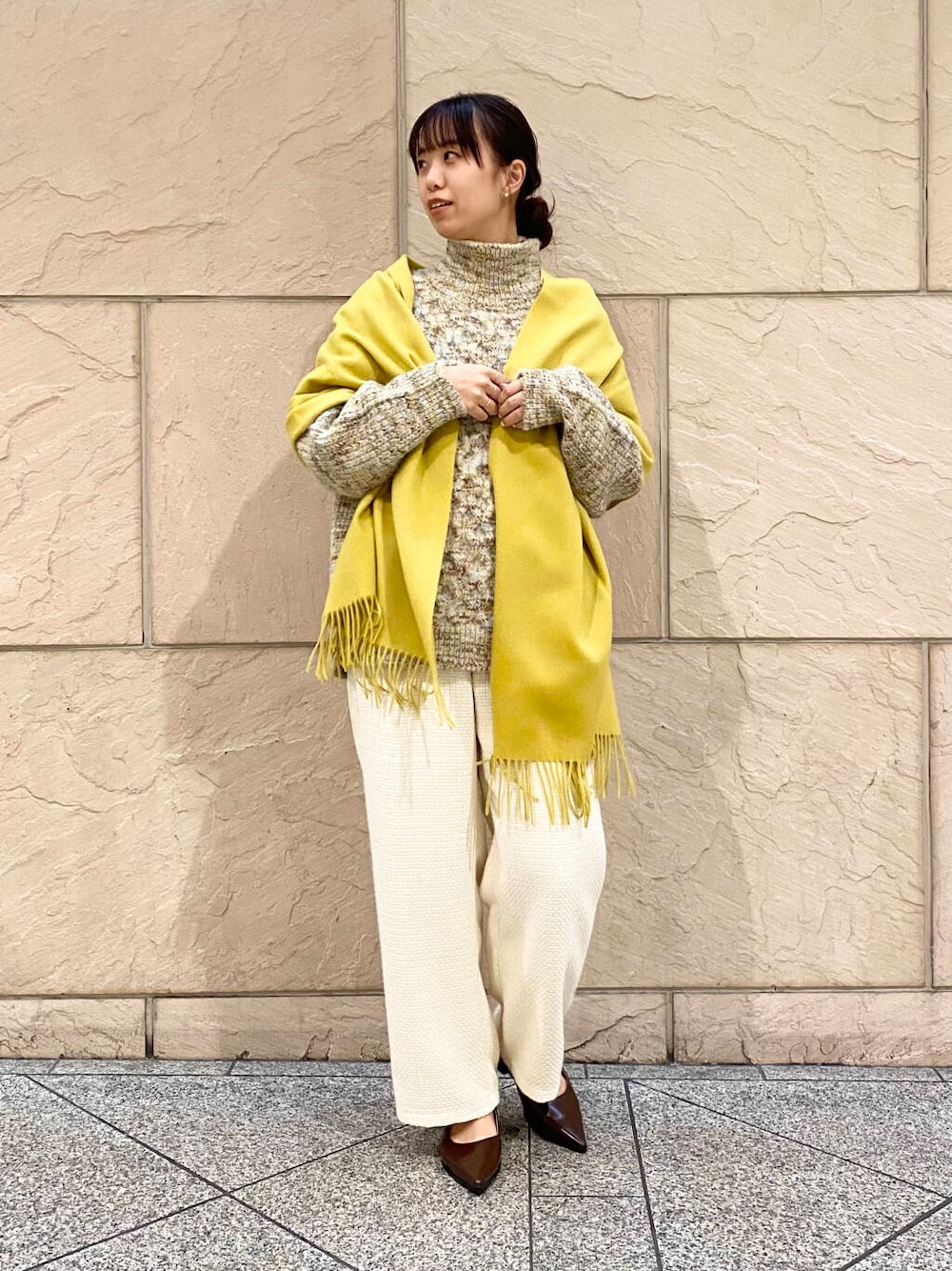 ニットにもイエローが混ざっているのでよくなじみました◎