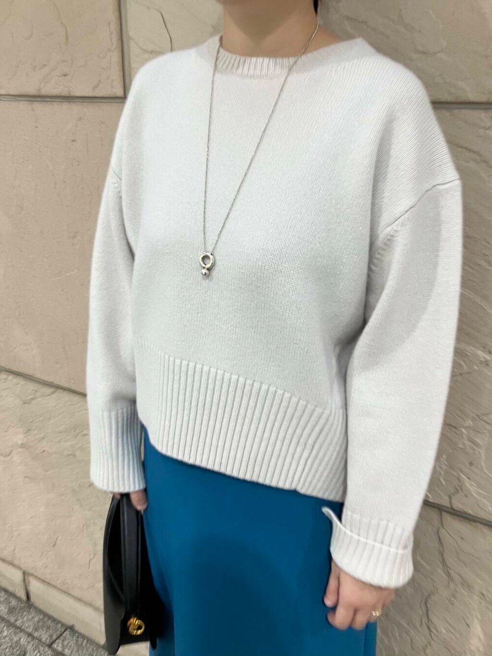 タイトスカートと合わせて小物はブラックで統一して大人カジュアルにしました。