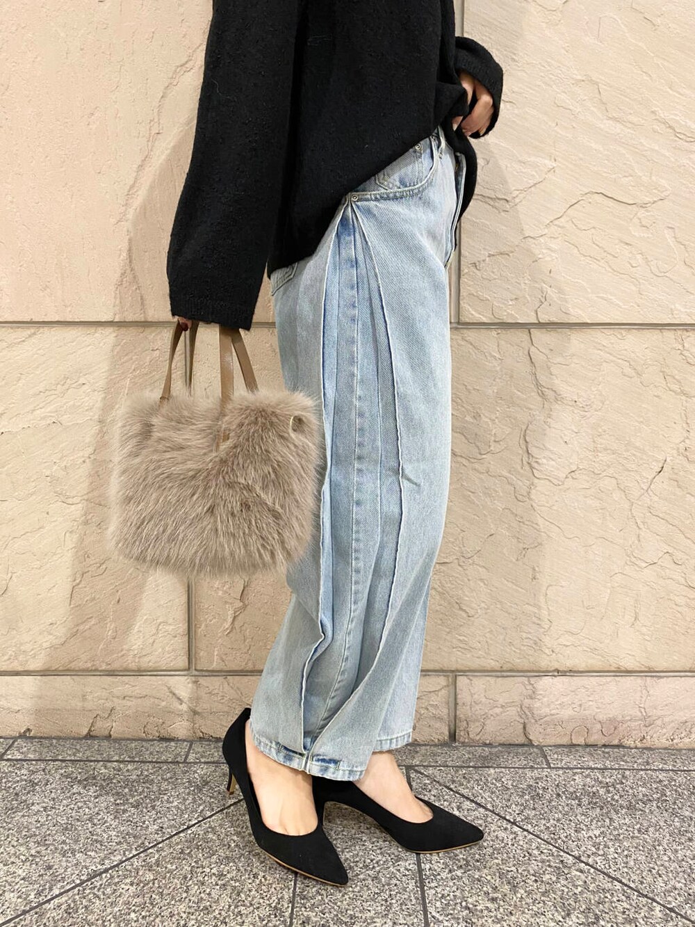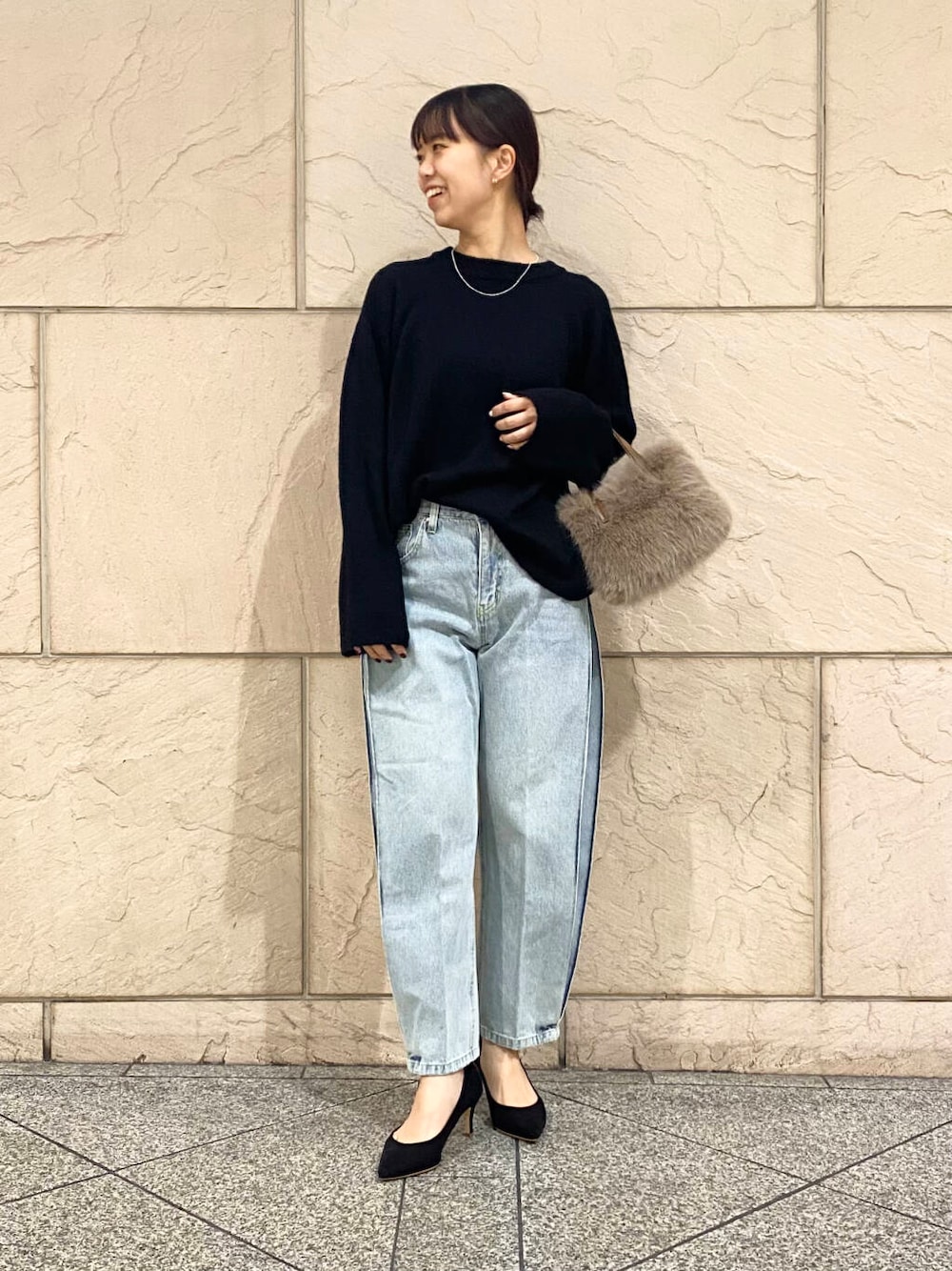 私はデニムと合わせて可愛らしすぎない大人かわいいを意識しました☺︎