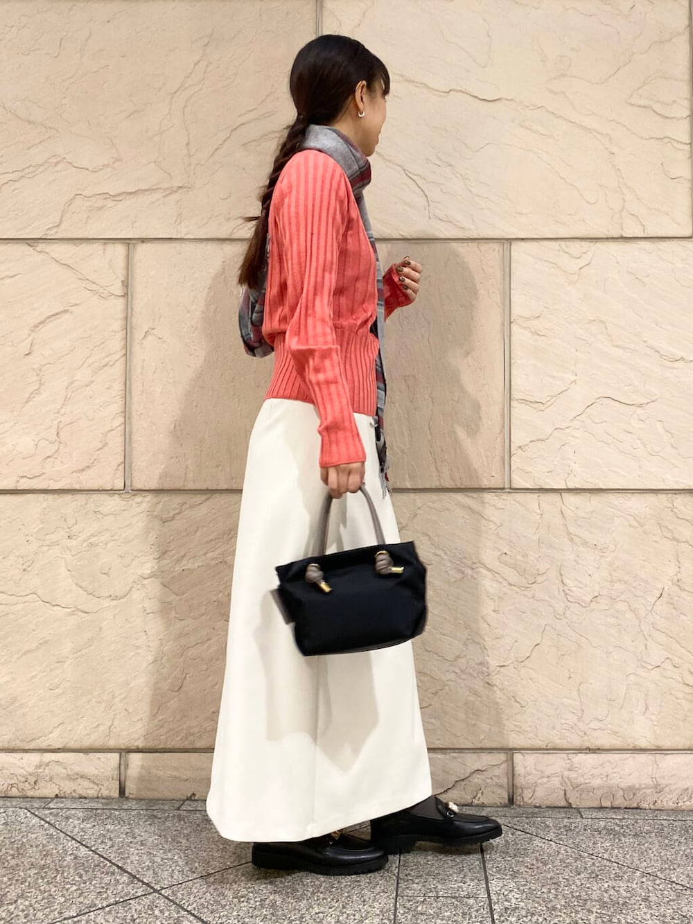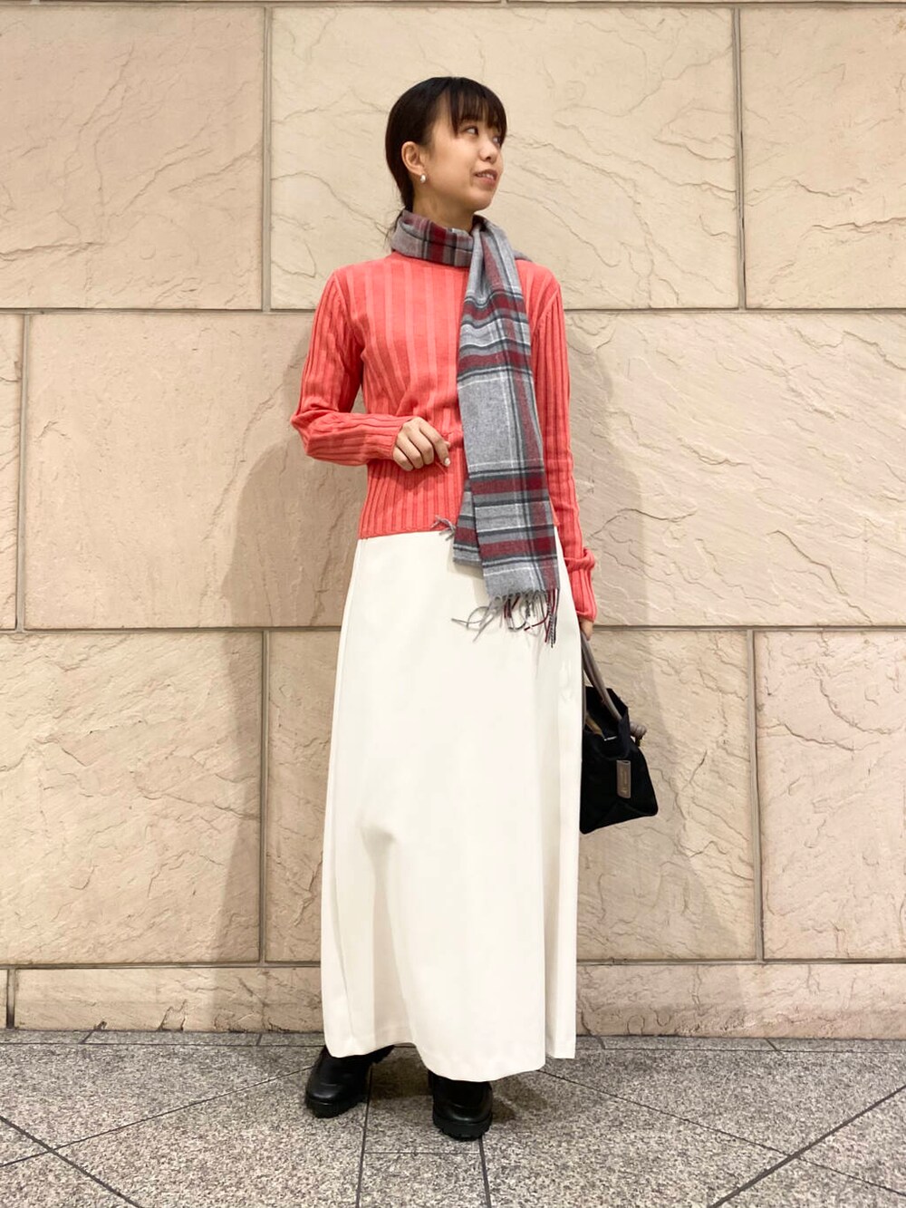 ピンクのニットに赤みがかったコートでグラデーションっぽく合わせました◎