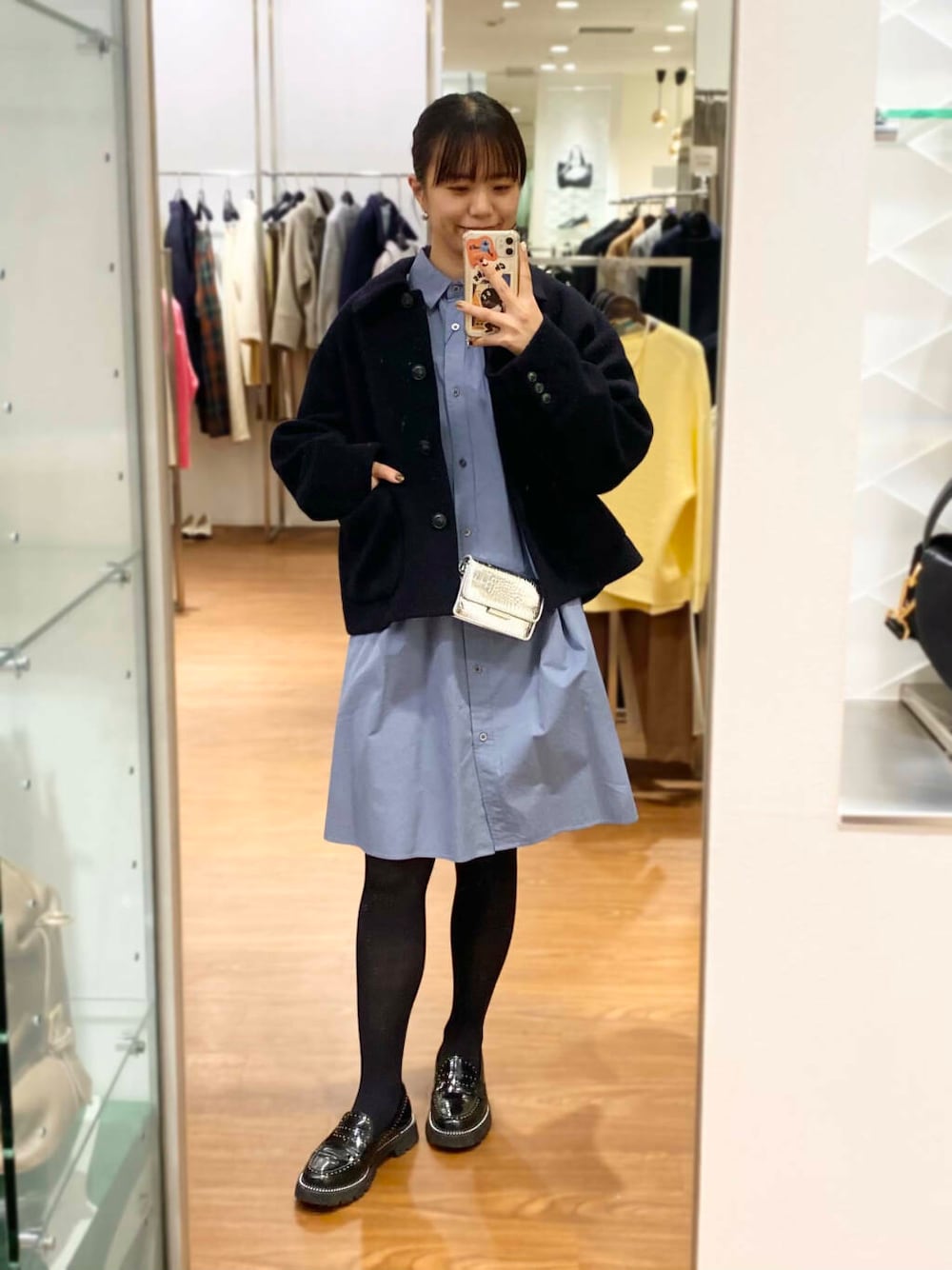 ショート丈のコートに合わせて全体的にコンパクトにまとめました!
