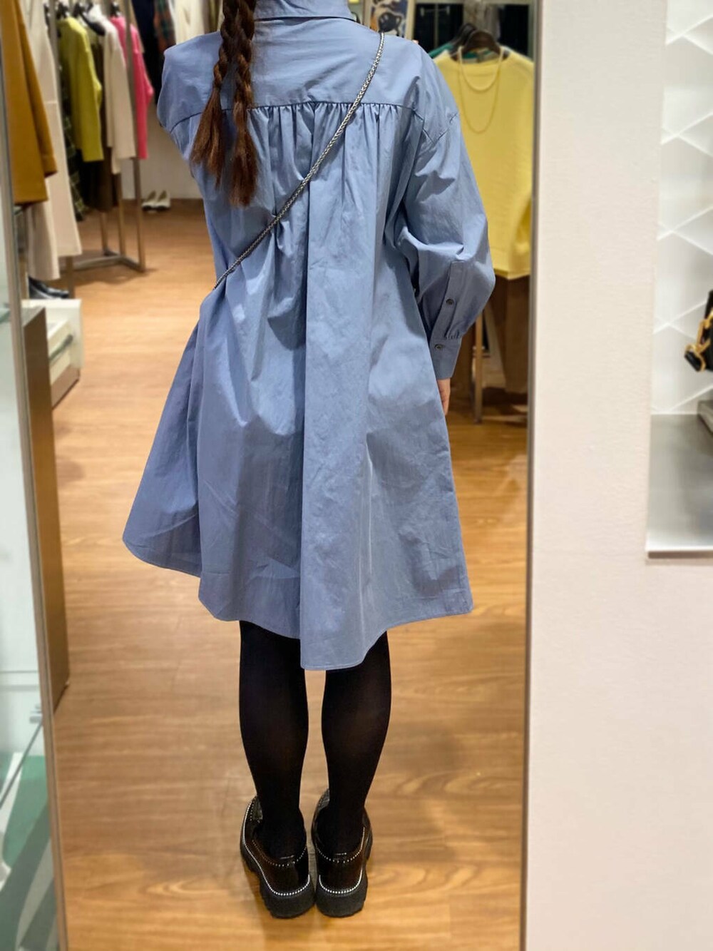 くすみブルーが冬のお洋服にもマッチしやすく◎