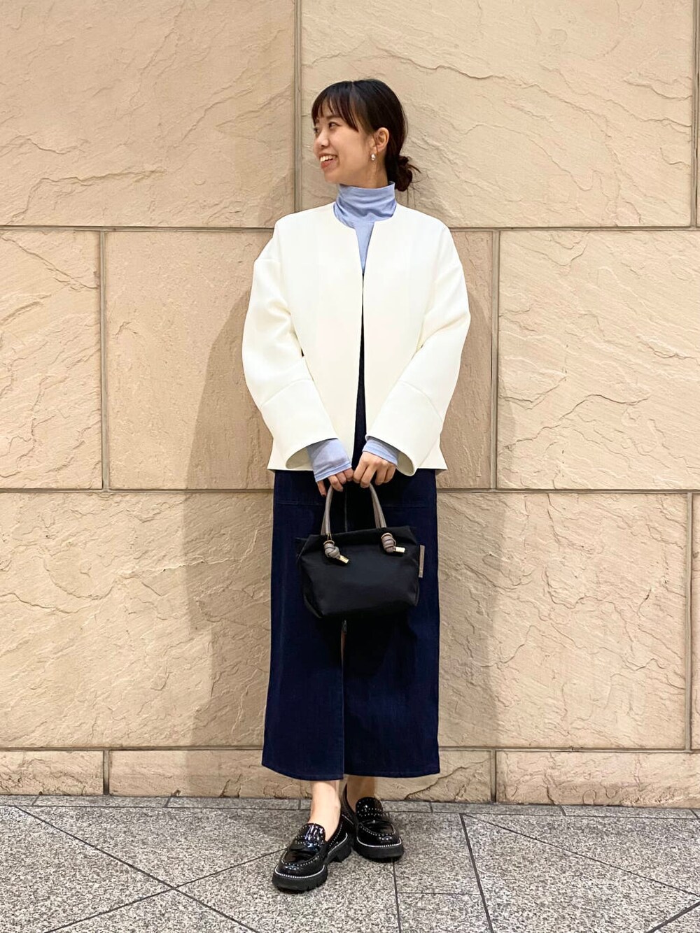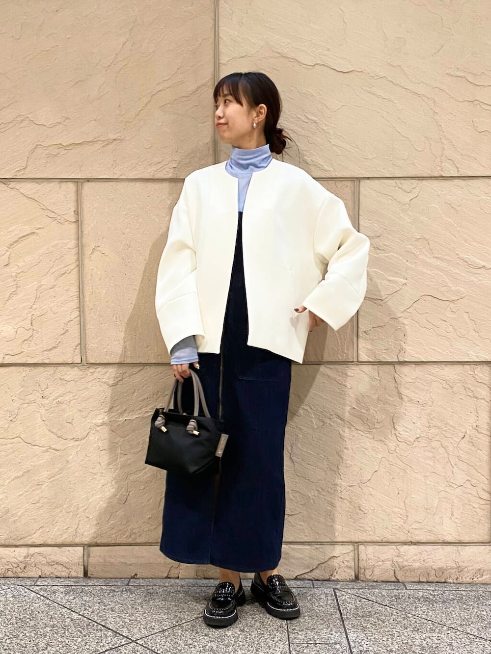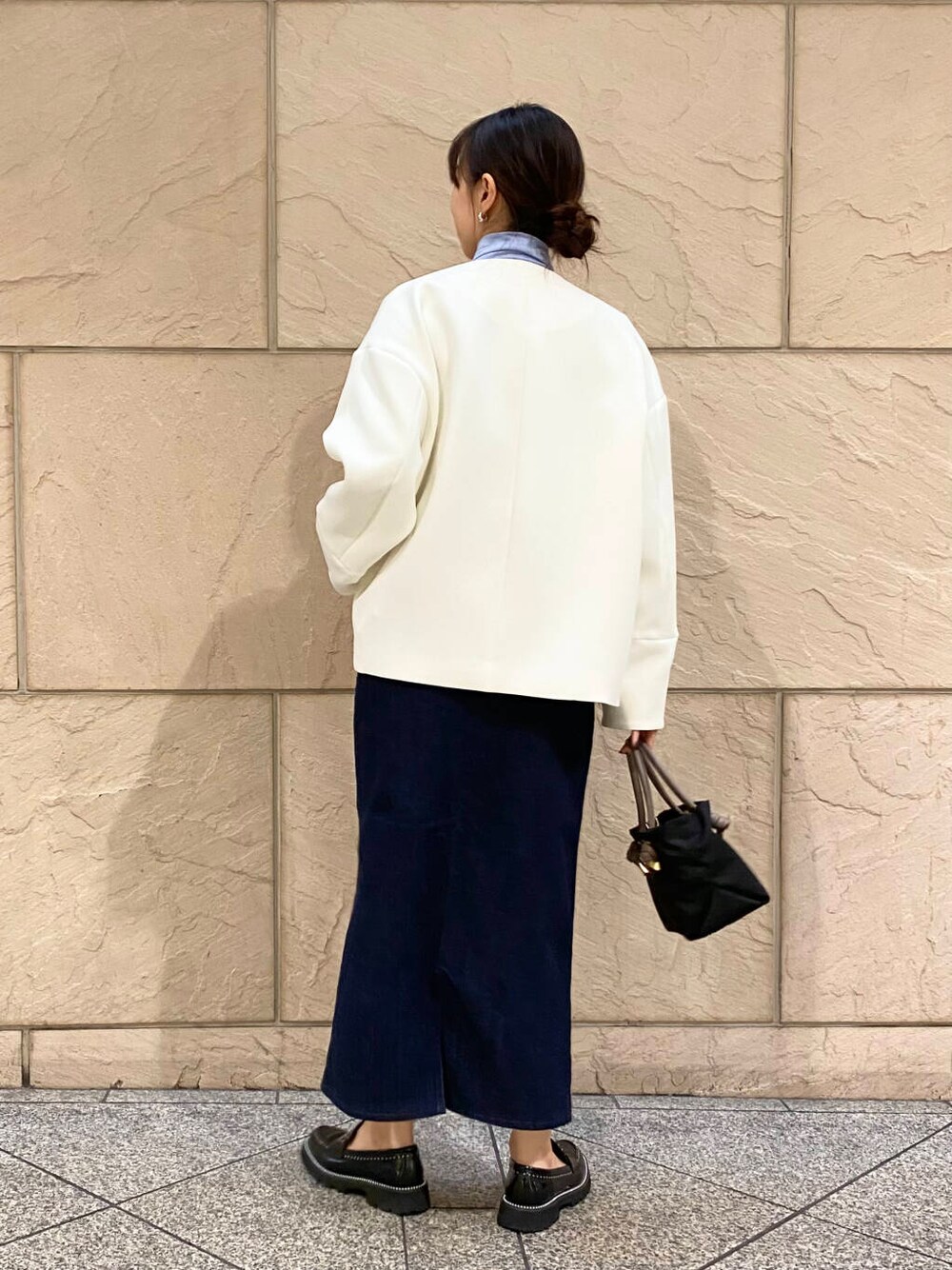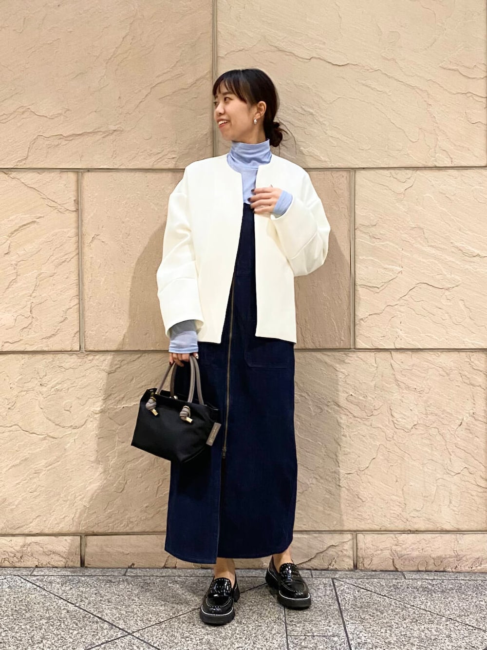 フォルムのかわいいショートアウターを合わせるのがおすすめです☺︎