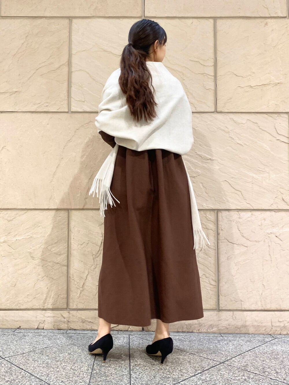 発色の良いブラウンなので一枚でさらっと着るだけで華やか!