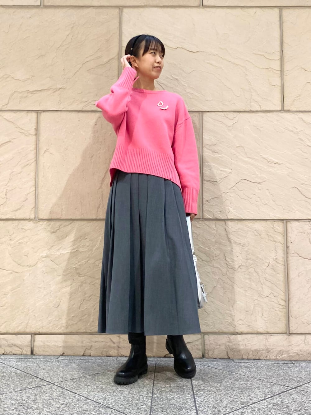 スカート合わせでもインせずそのまま着るのがおすすめです!