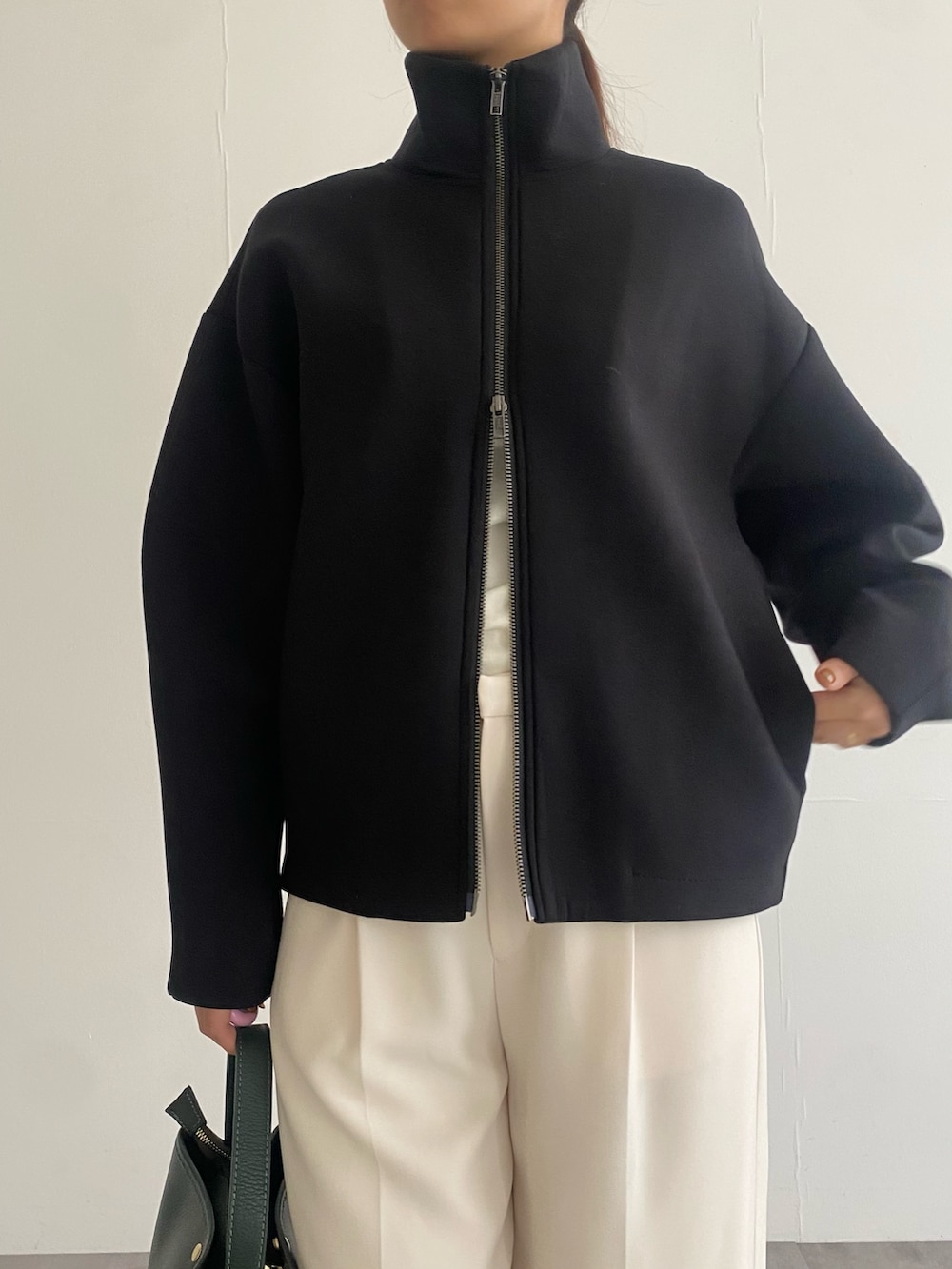 ファスナーを上までしめてスタンドカラーにしても
