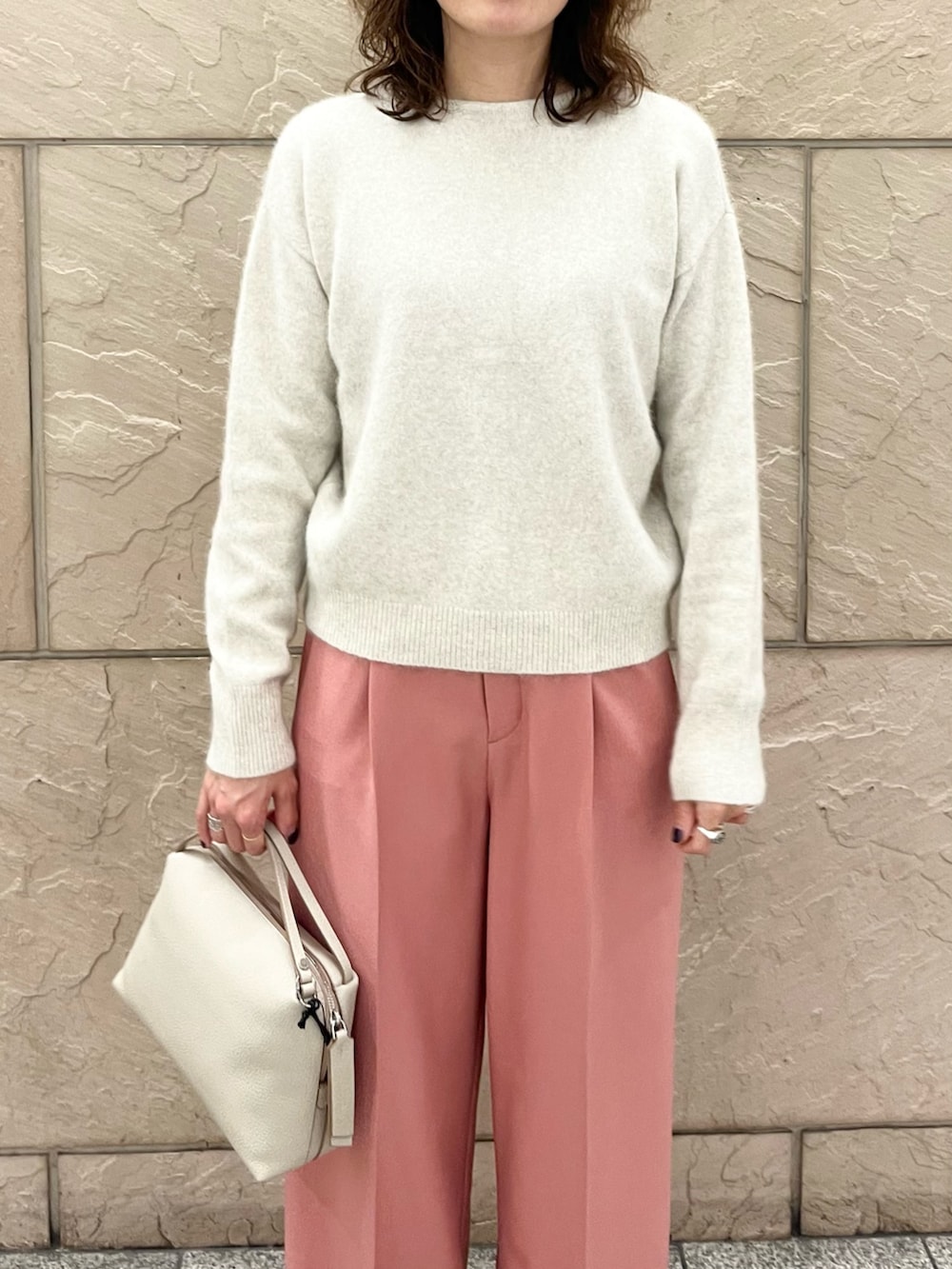 白のパンツやカラーパンツを合わせやすいグレーがかった白です。