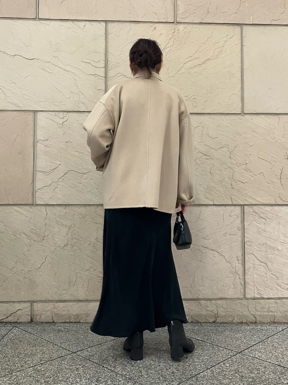 カシミヤが7%入っており、とても軽くて暖かいです。ジャコットなのでオーバーすぎないシルエットが着やすくお仕事の通勤等にもおすすめです!
