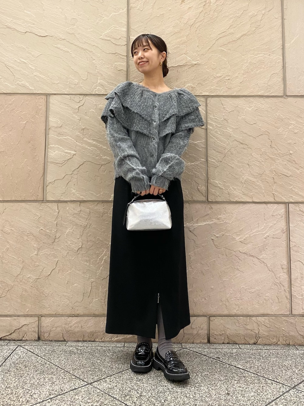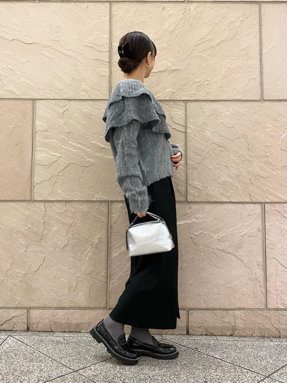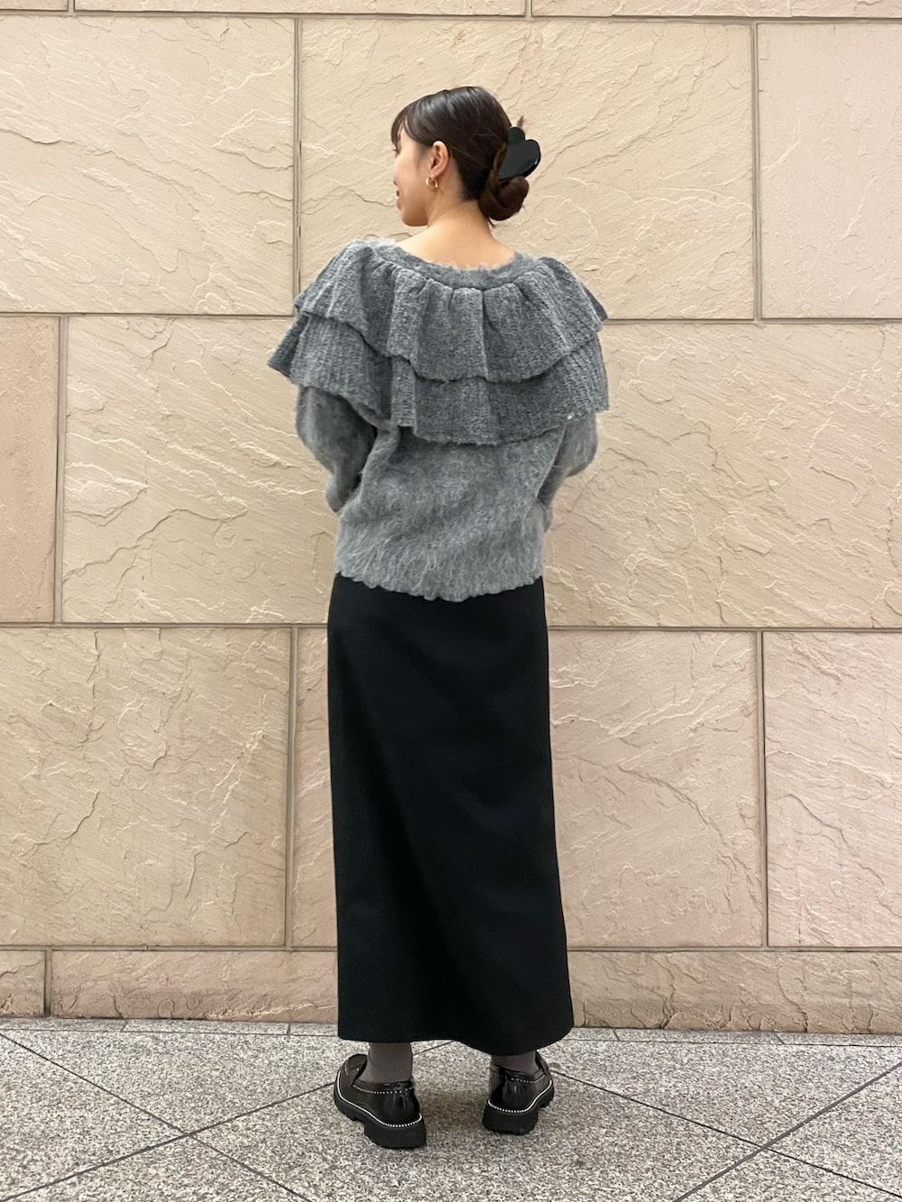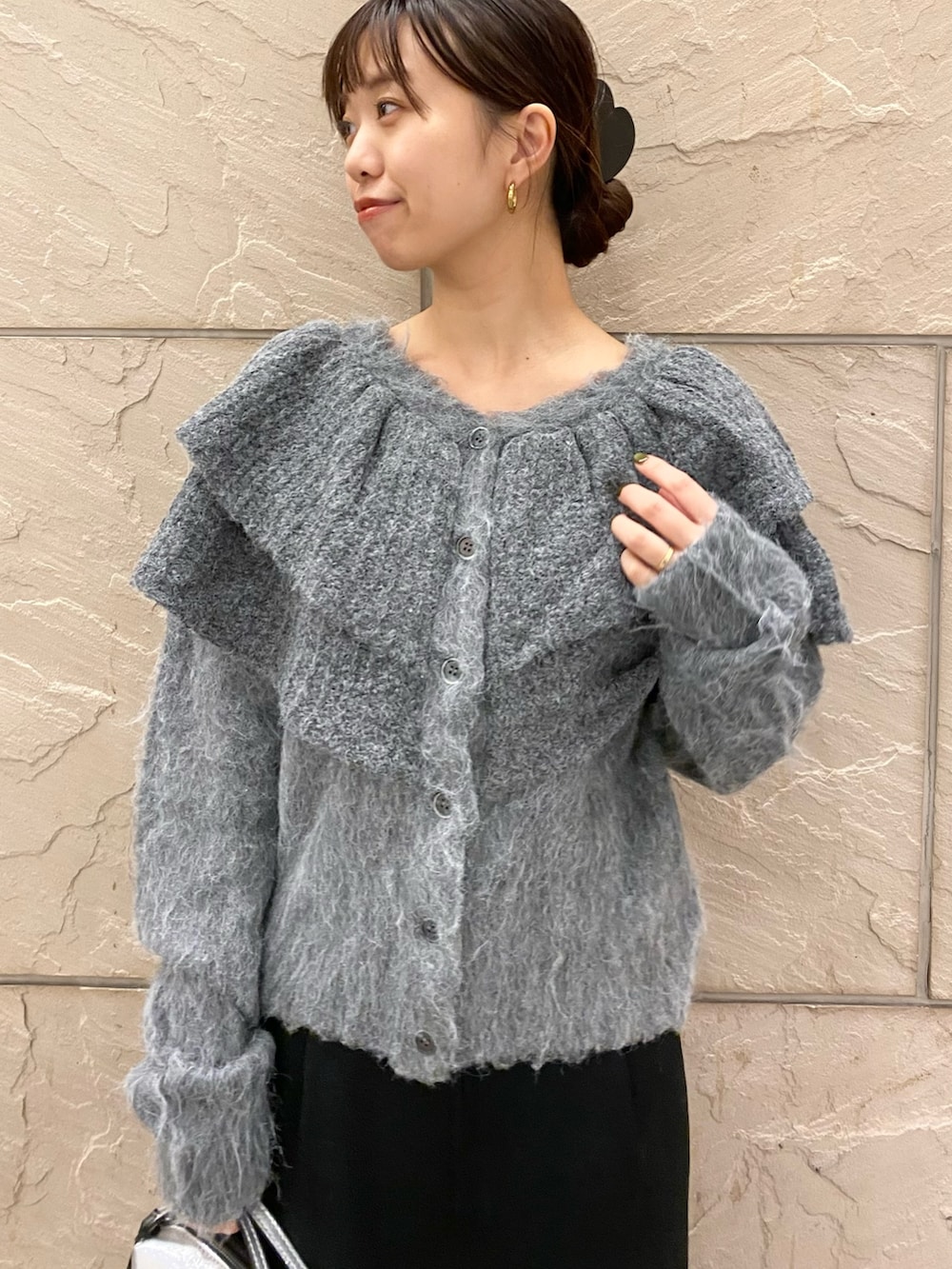 こちらは大きいフリルとふわふわ素材が目を引くニット