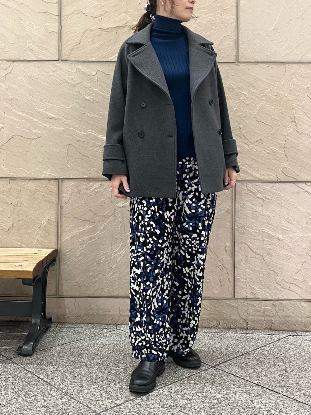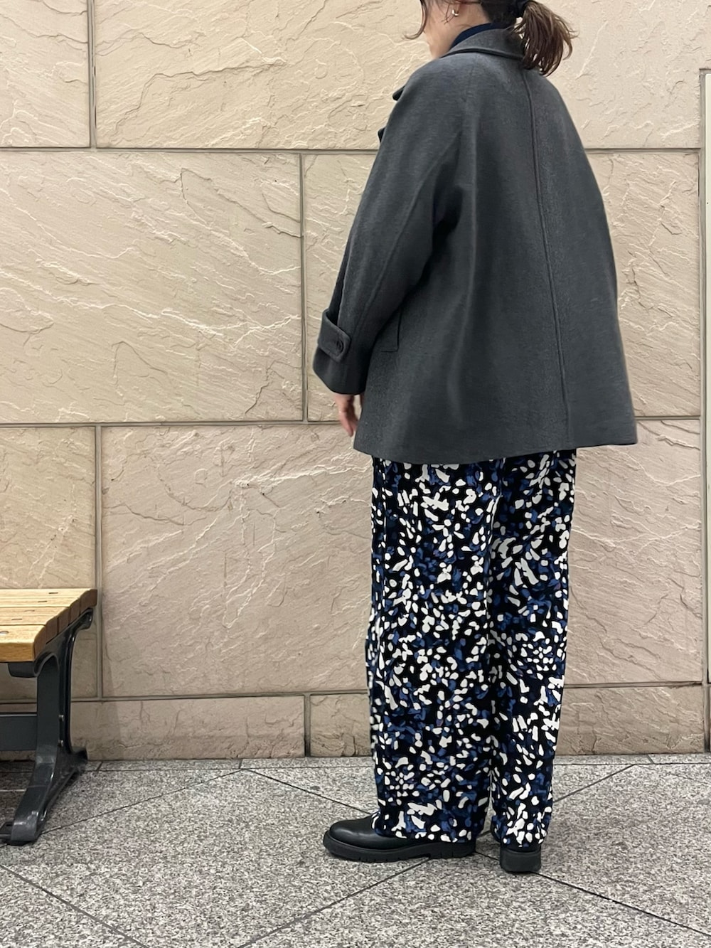 楽ちんな柄パン!冬のニットとコーディネート◯です。ざっくりしたニットからコンパクトなニットまで幅広いデザインと相性が良いです。