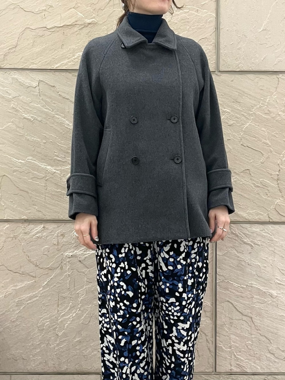 人気のPコート、フリーサイズですが私がきても脇のあたりや腕周りも大丈夫でした。軽くてあったら嬉しい一枚。