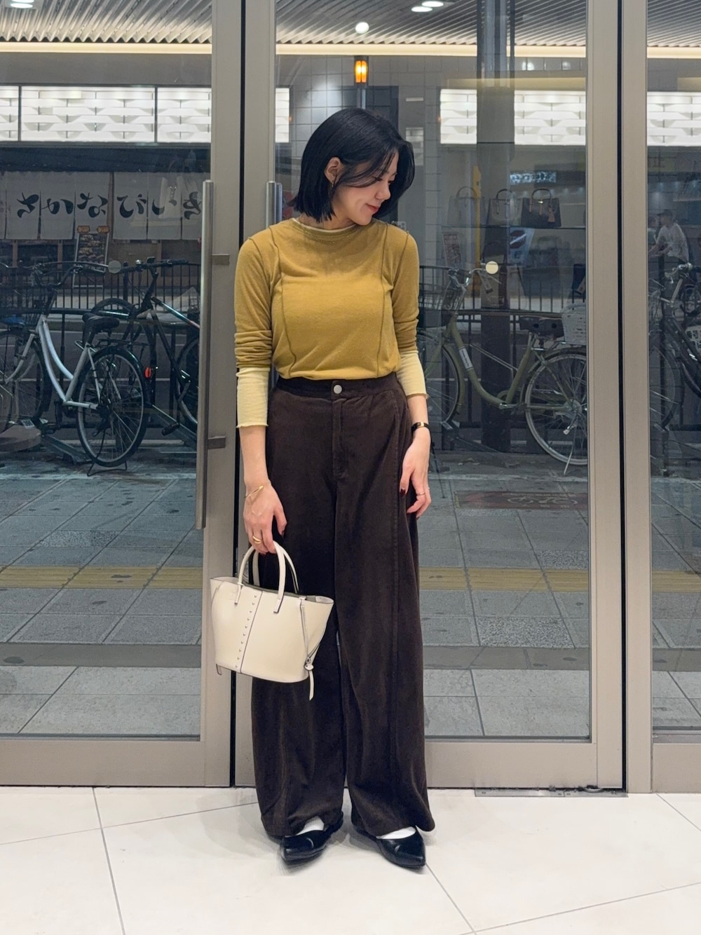 コーデュロイのパンツは秋冬の定番で動きやすくてシルエットもきれいです😉