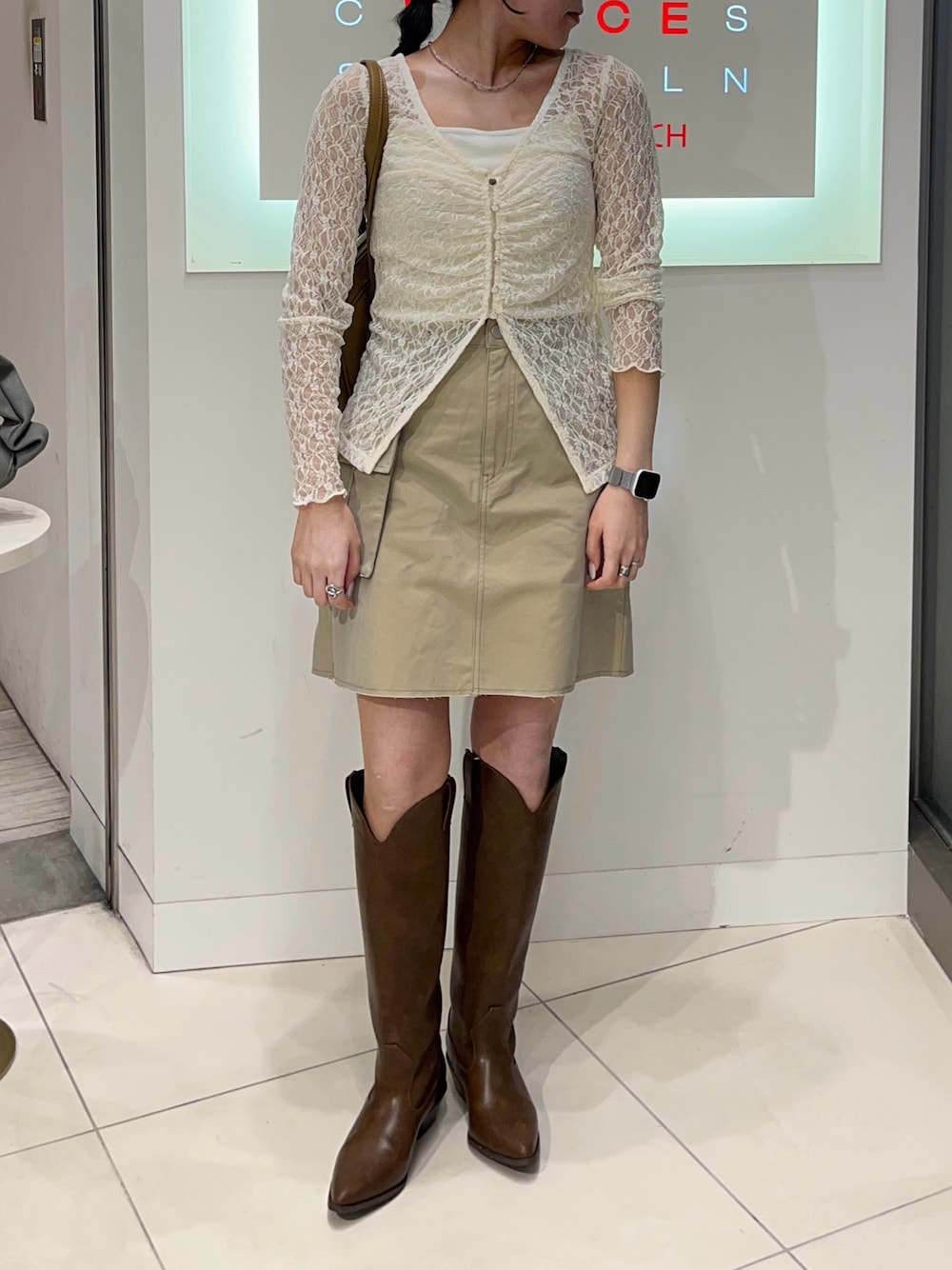 これからの季節はスカート+ロングブーツで一気におしゃれに!ブーツの今っぽいデザインと、カラー展開が今年のセンスオブプレイスのブーツです☺️!