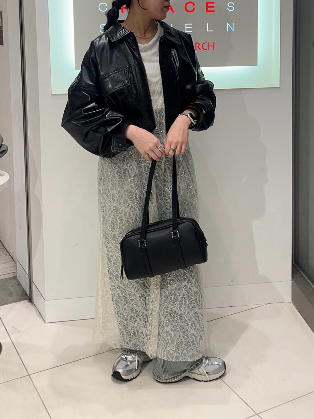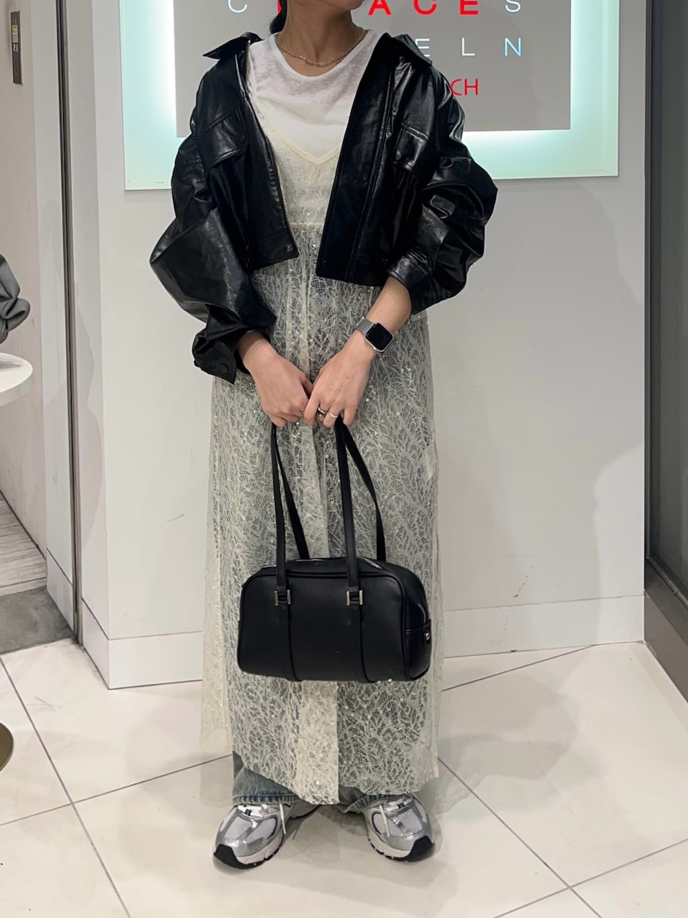 少しかっこいいめなブルゾンとスパンコールのキャミワンピースを組み合わせることで、大人っぽくおしゃれに☺️!