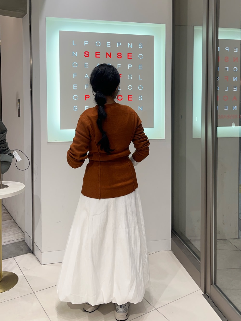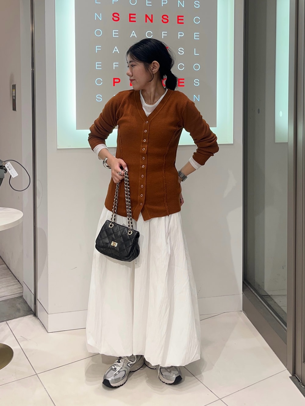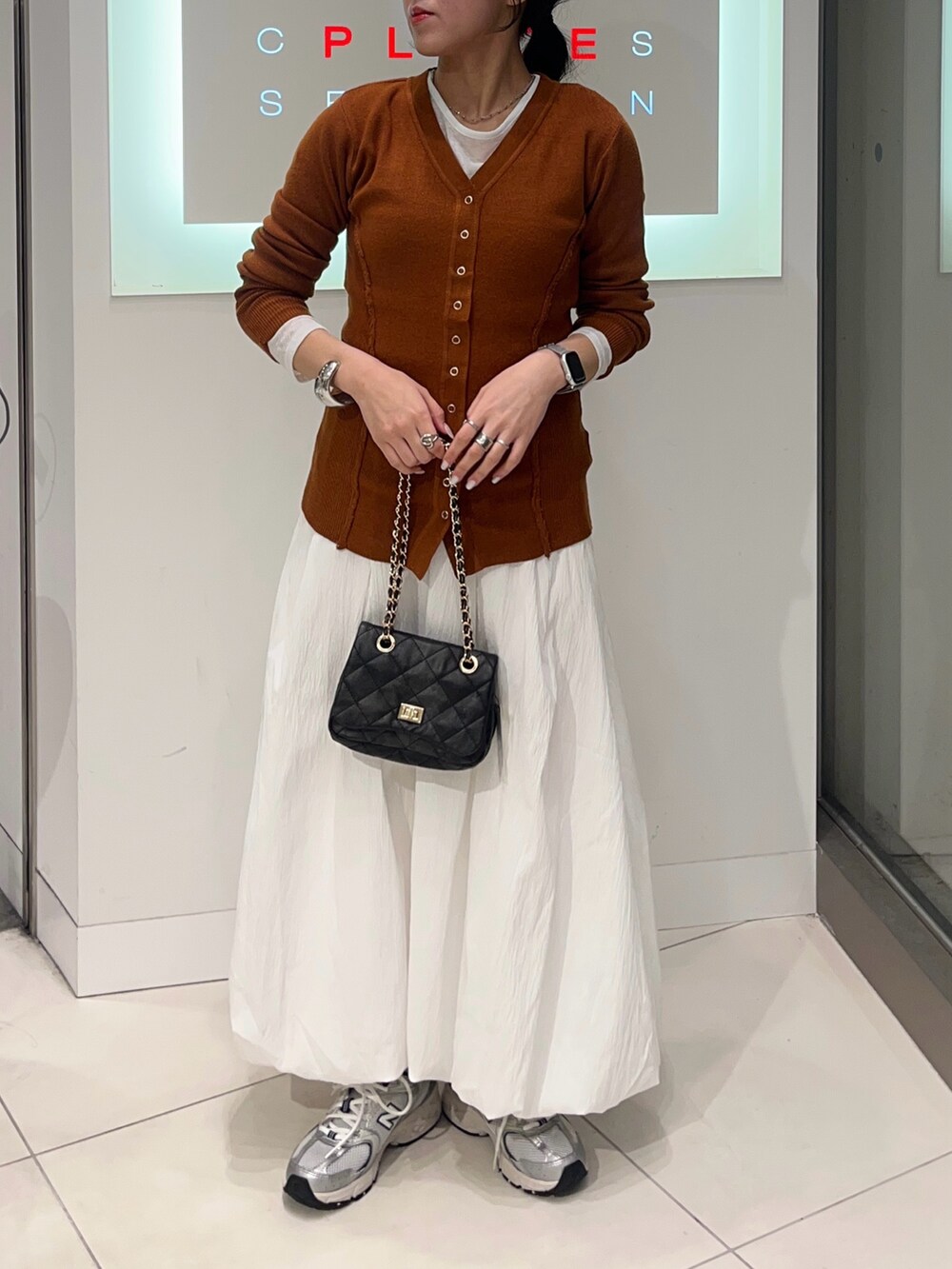 縦のラインが綺麗なので、バルーンスカートと合わせても、バランスよく広がりすぎずに着用できます!