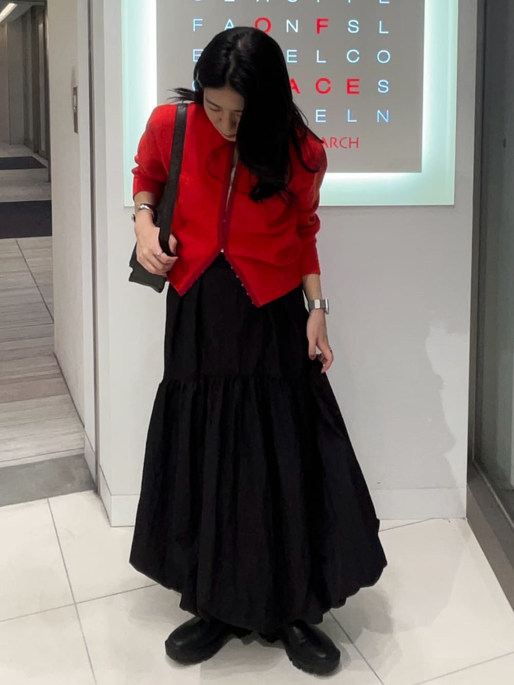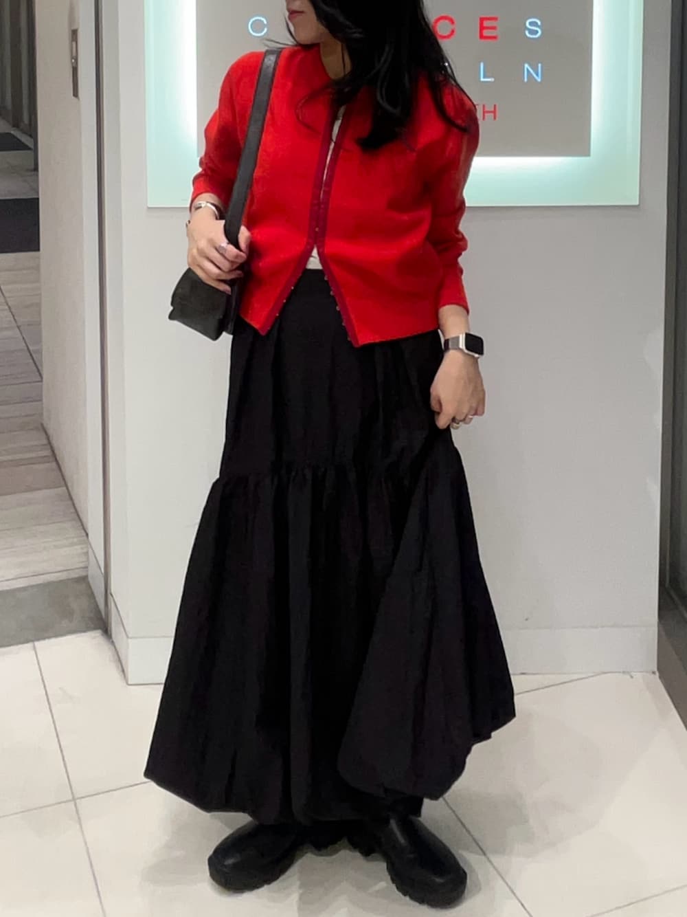 ティアードのバルーンスカートは動くたびにふわっと揺れるシルエットが特徴的です☺︎