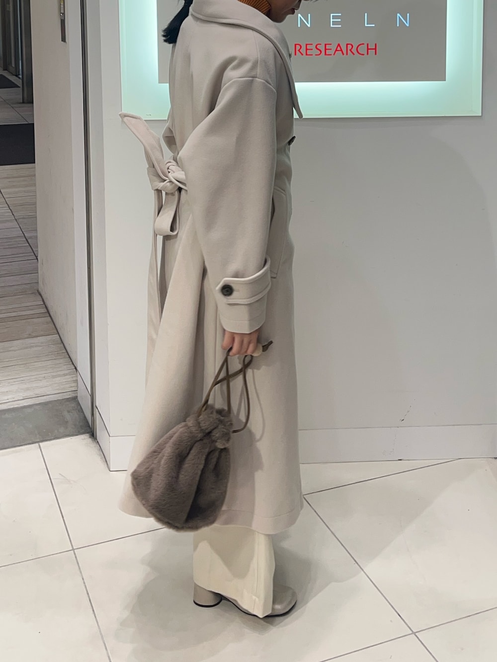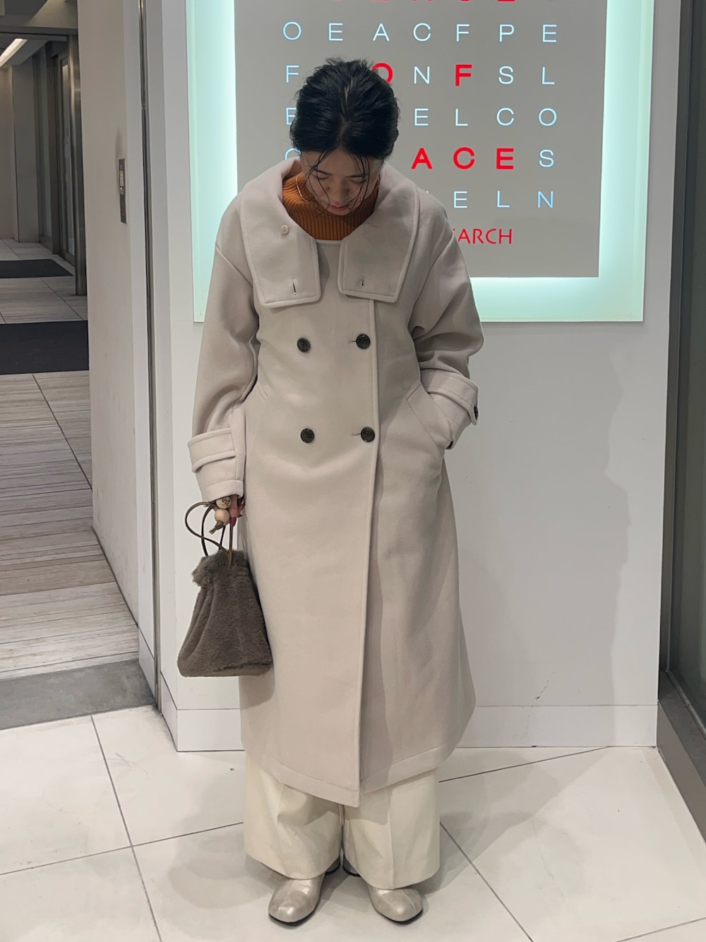 普段は甘めに見えがちな白のコーディネートも、ロングコートで一気に大人っぽくかっこよく着れます!