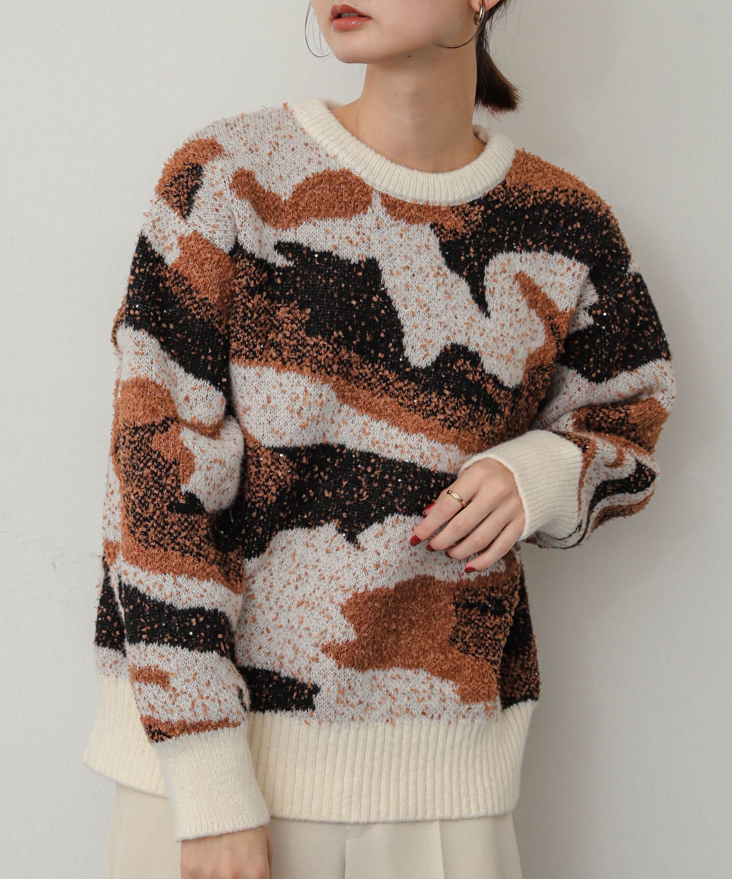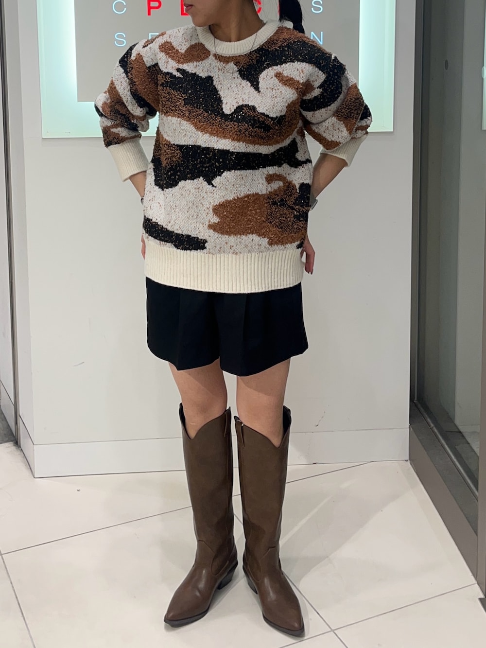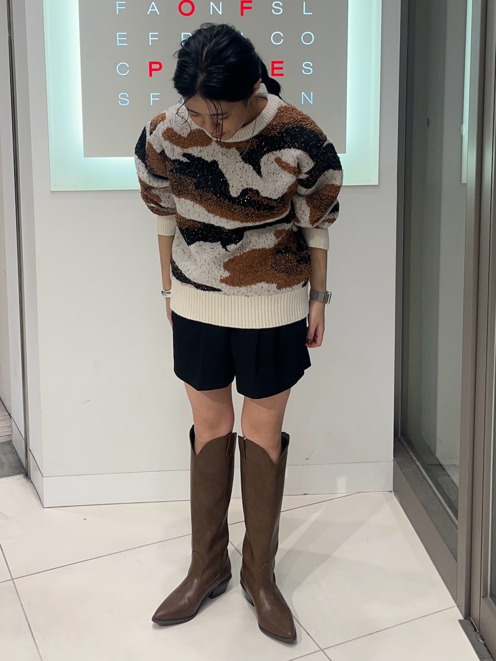 ロングブーツとパンツをセーターの模様の色に合わせて