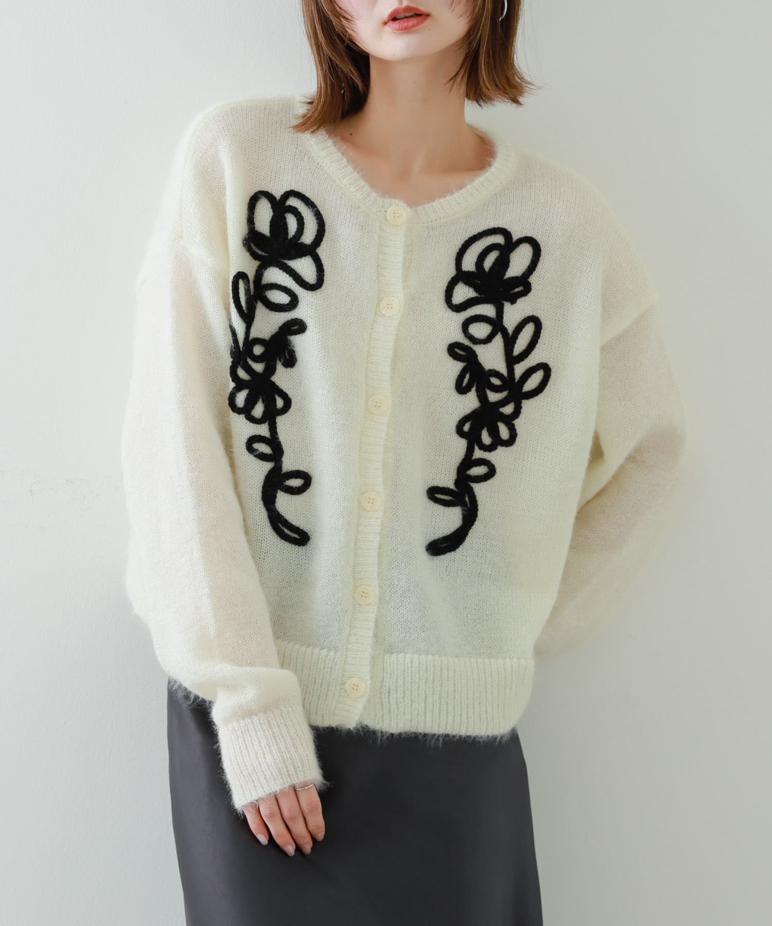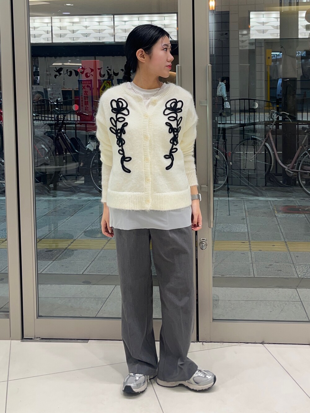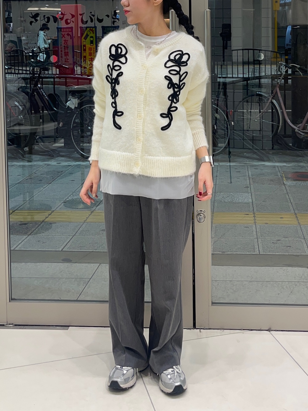 きれいめパンツとスニーカーを合わせて刺繍のカーディガンを大人っぽくコーディネートしてみました!☺︎