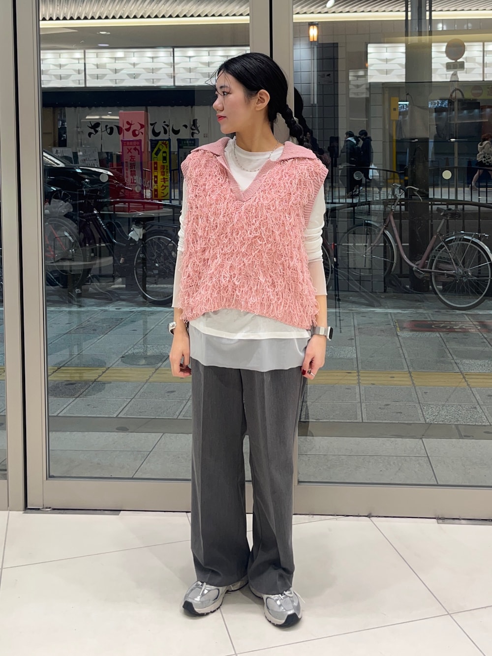 このベストがあるだけで、一気に顔周りも明るく華やかに見せてくれます!:)
