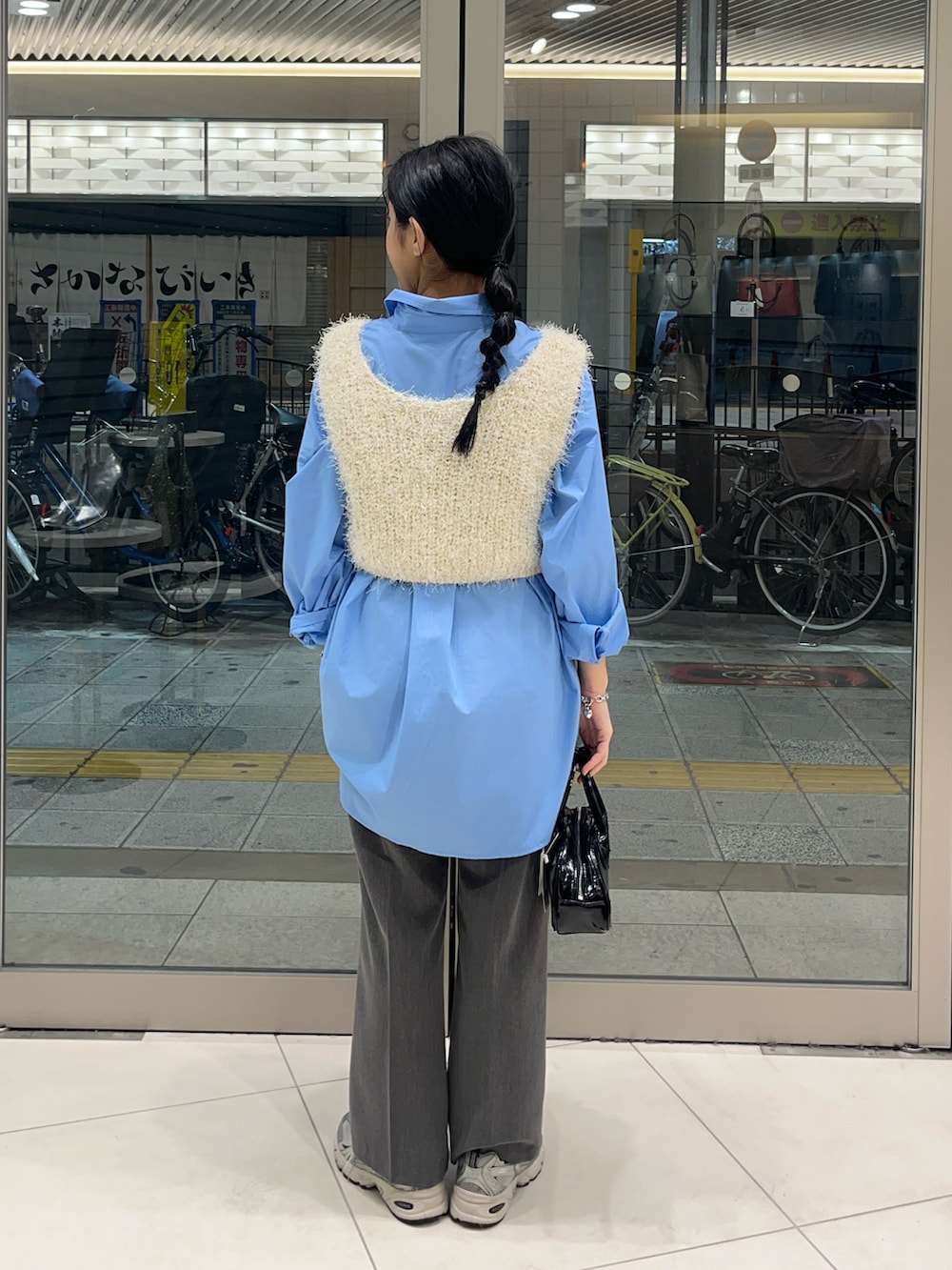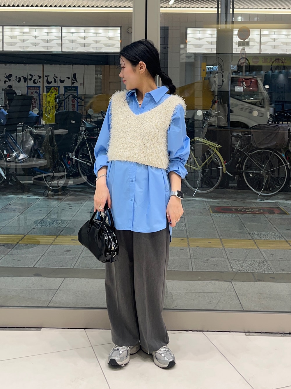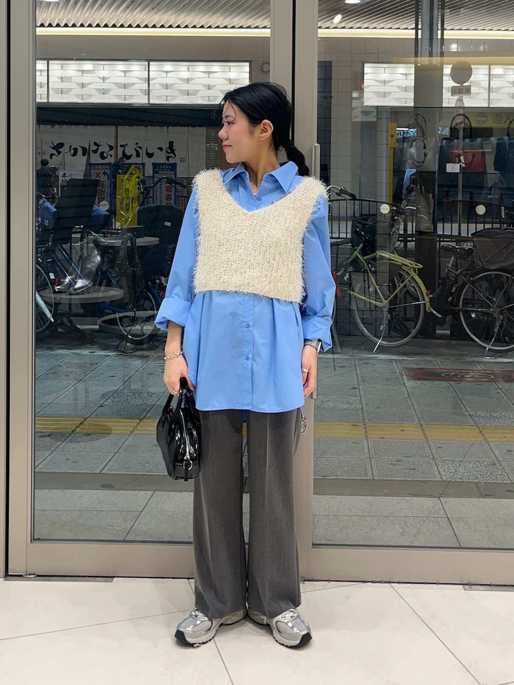 取り入れるだけで一気におしゃれ見えするブルーのシャツがポイントです💙!