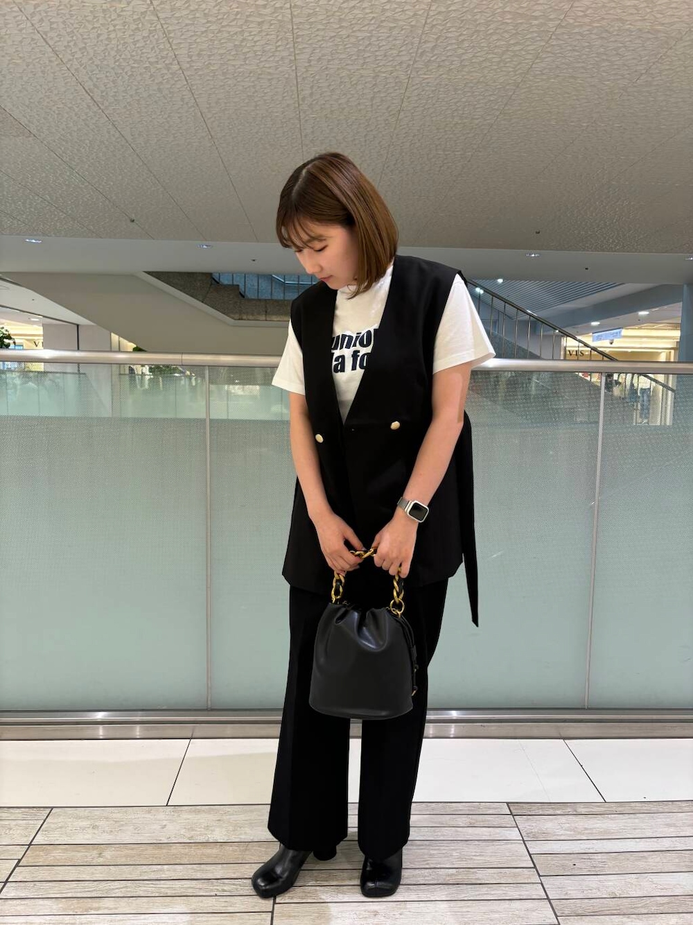 ジレとストレートパンツを合わせたセットアップコーデです!