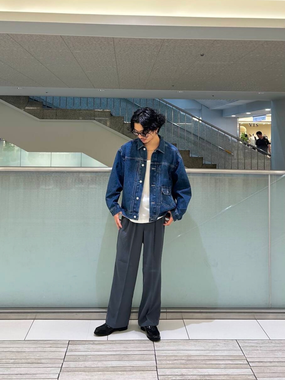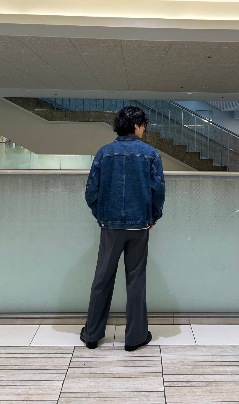カジュアルになりすぎないようにベーシックなデニムジャケットにキレイめのスラックスを合わせてみました!