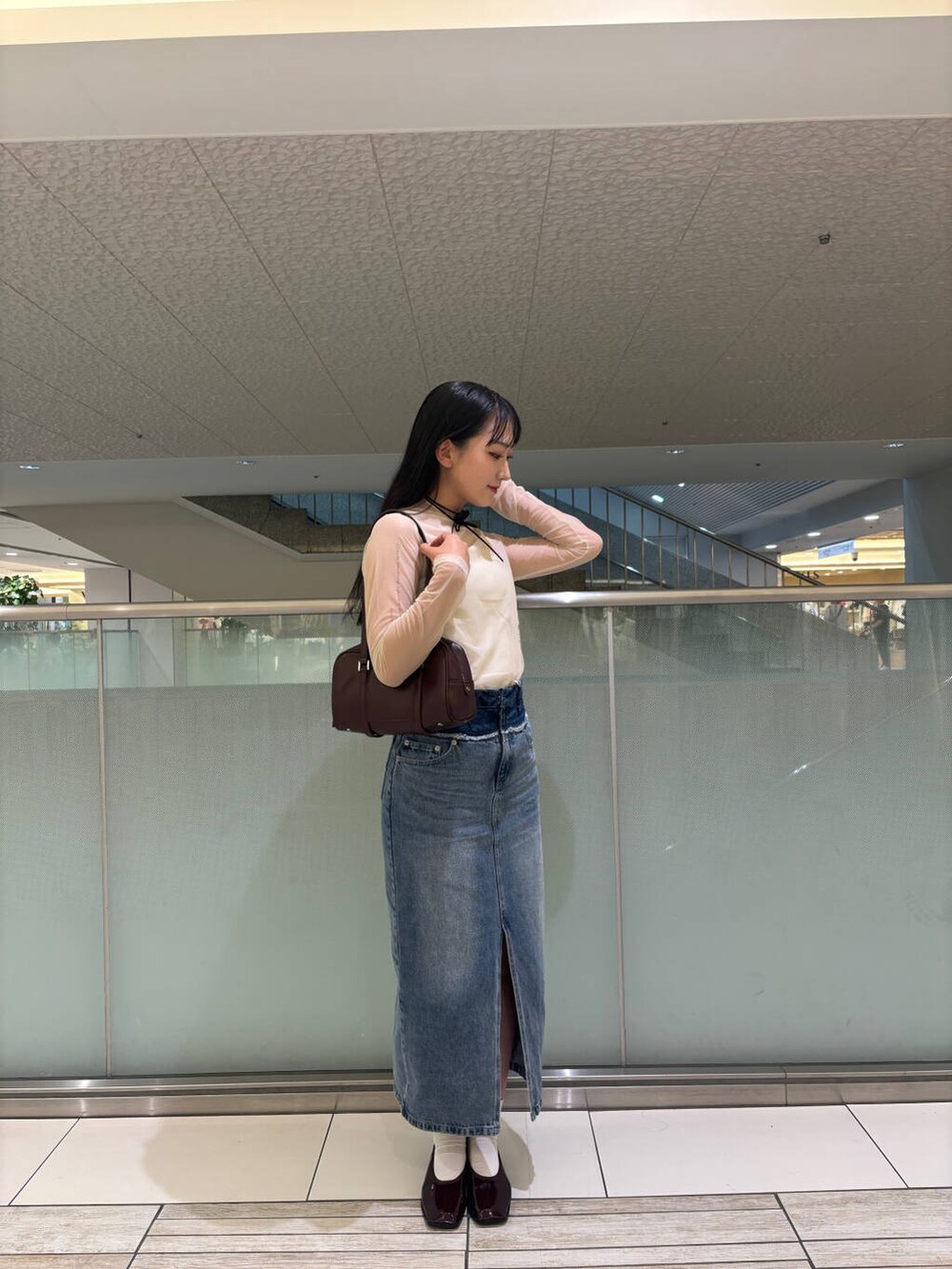 Iラインシルエットが綺麗なデニムスカートは、デザインがとても可愛いです!💫