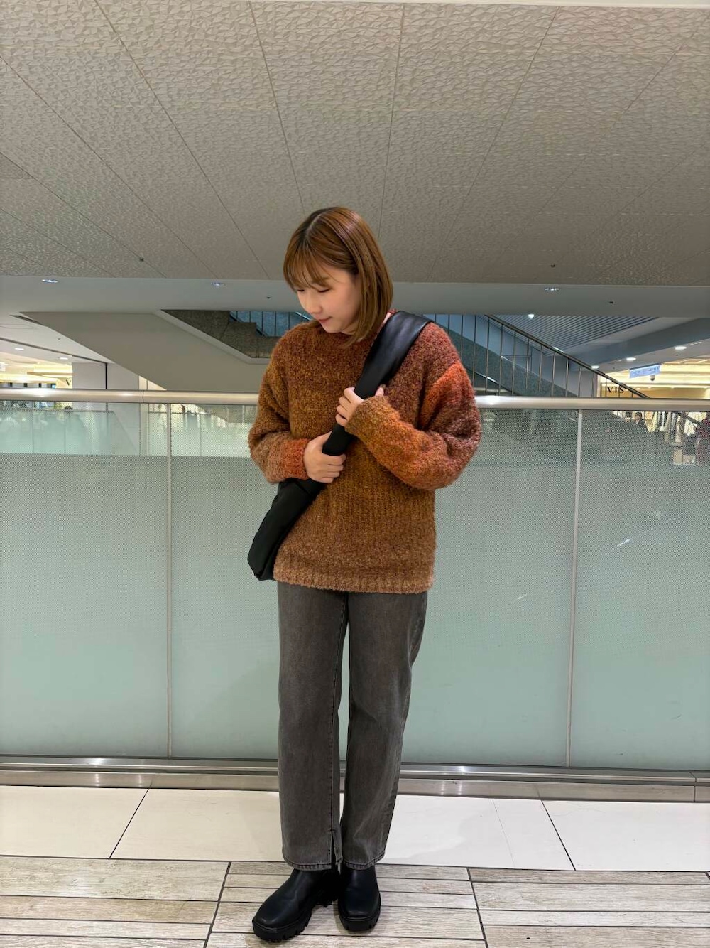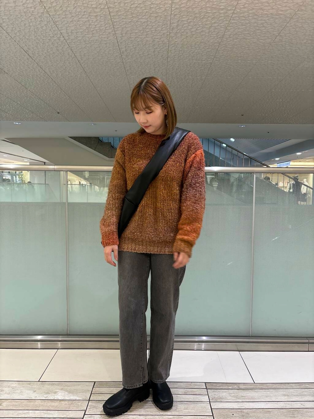 ニットはメンズのMサイズ着用で少しゆるっとしたサイズ感で着ていただけます!