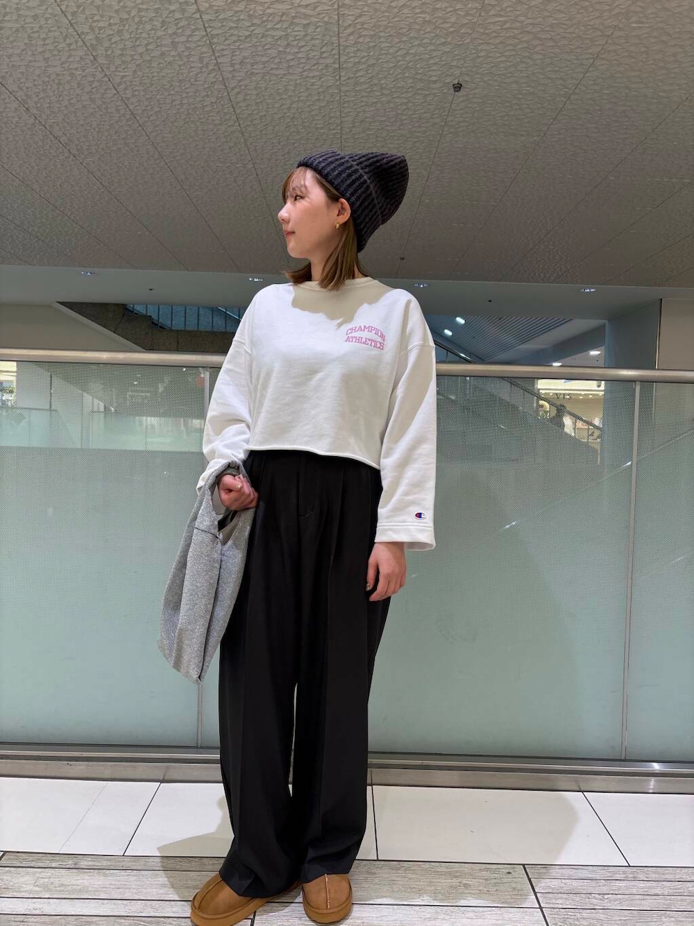 着用しているスウェットは胸元のロゴがピンクになっててとても可愛いです🤍