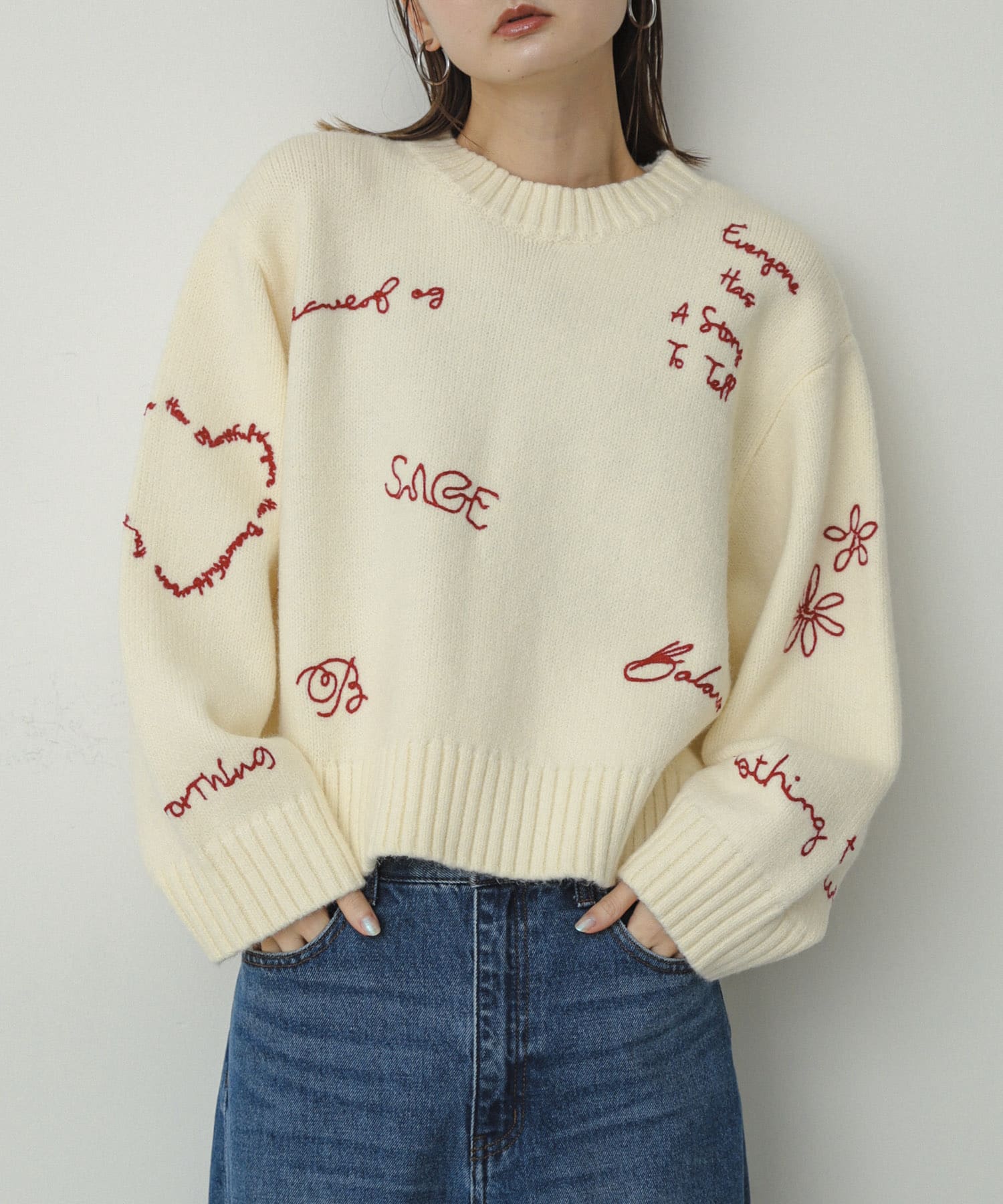 人気のシシュウデザインニットは1枚でオシャレ感の出るオススメアイテムです☺️