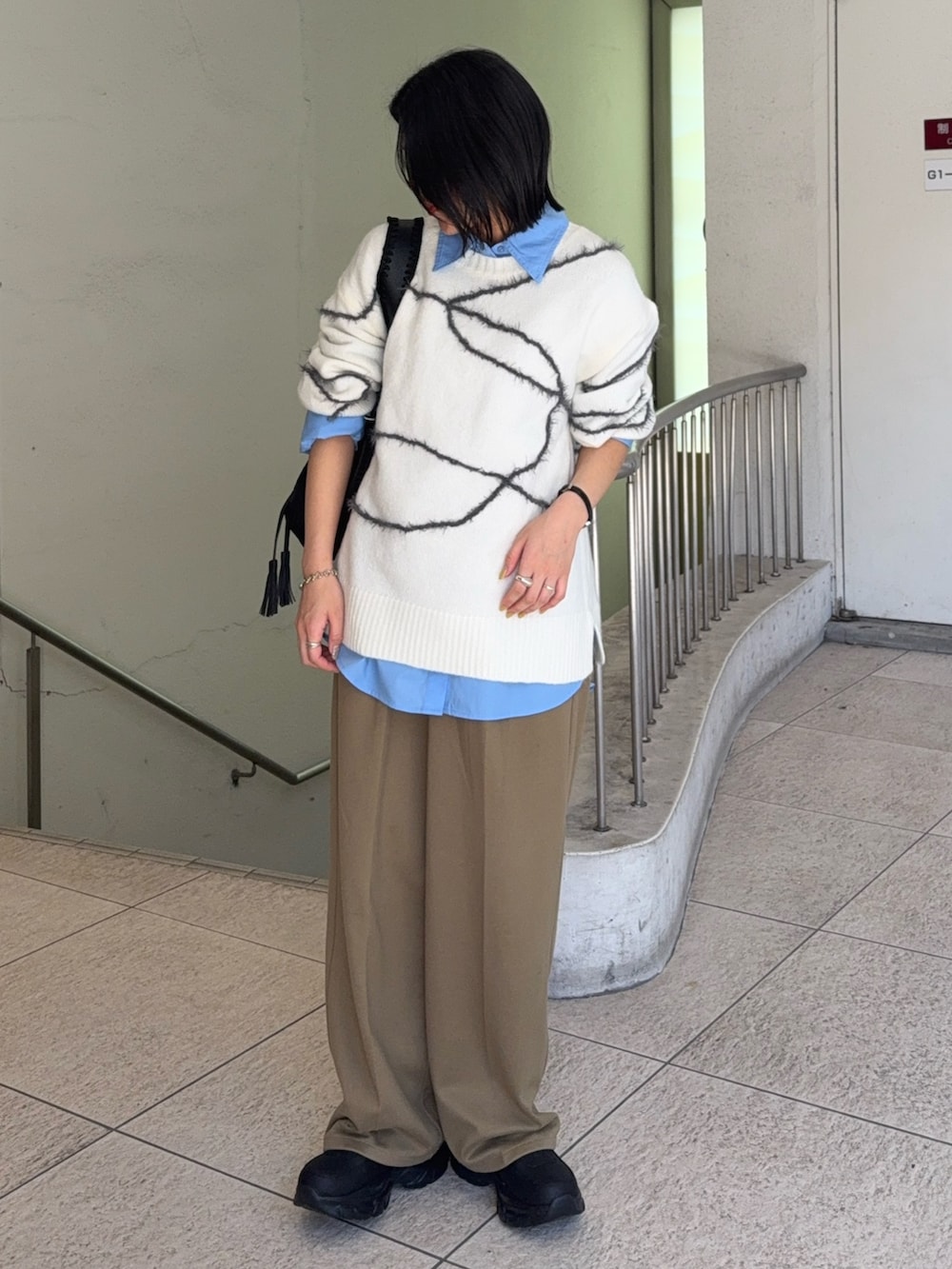 SENSE OF PLACEシャギーラインルーズニット- 着用カラー: