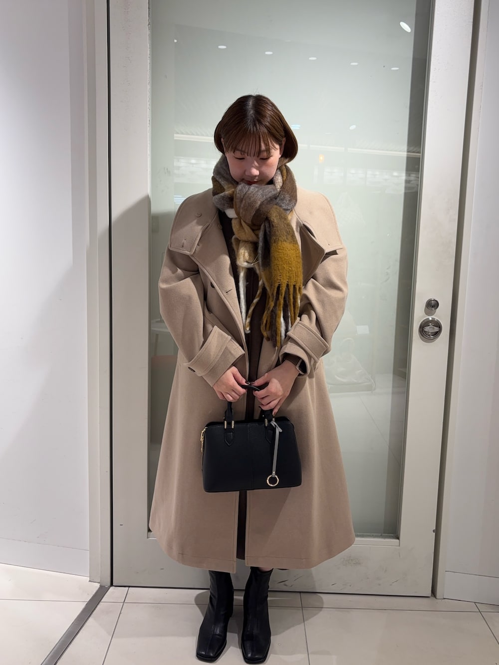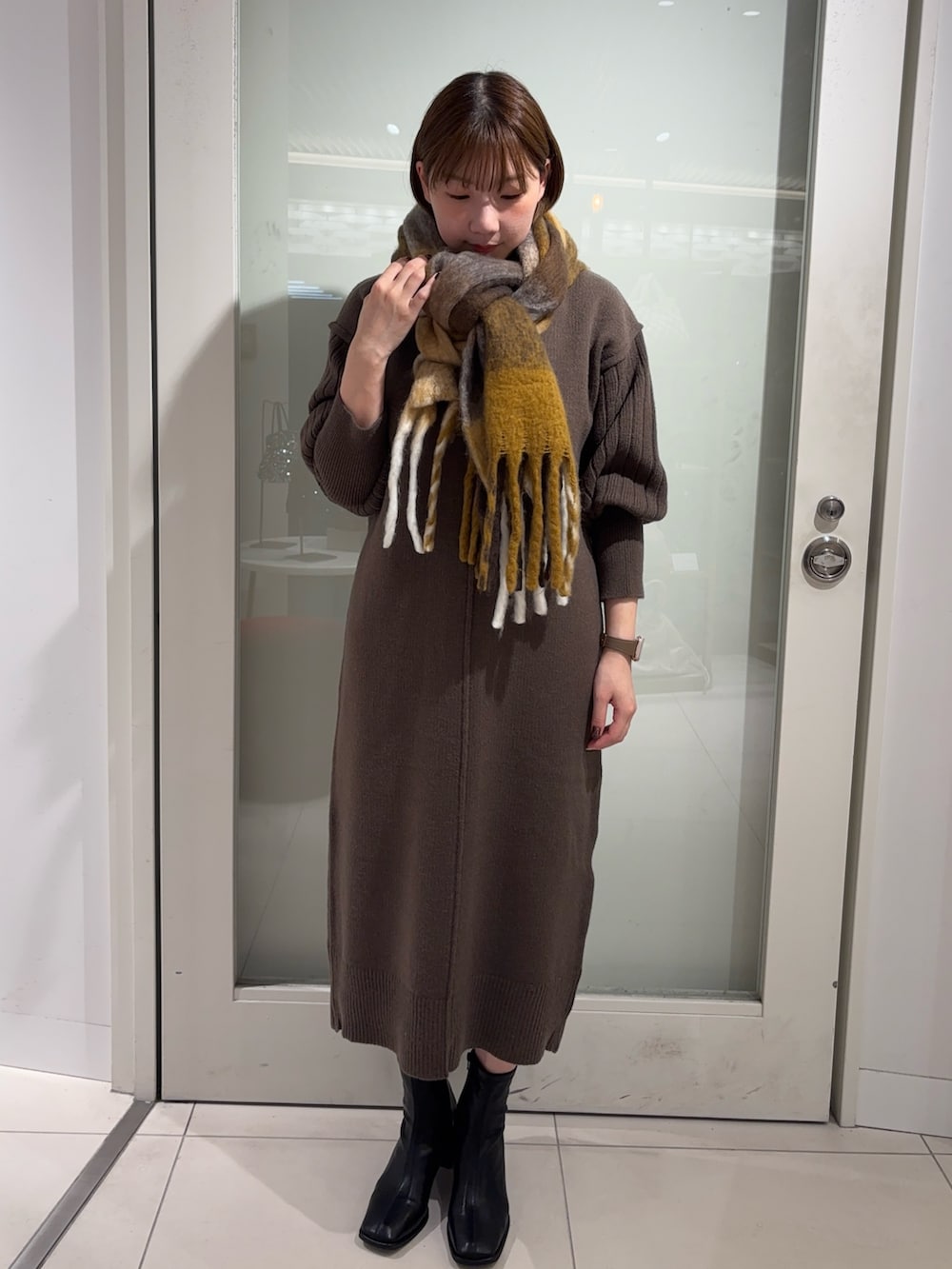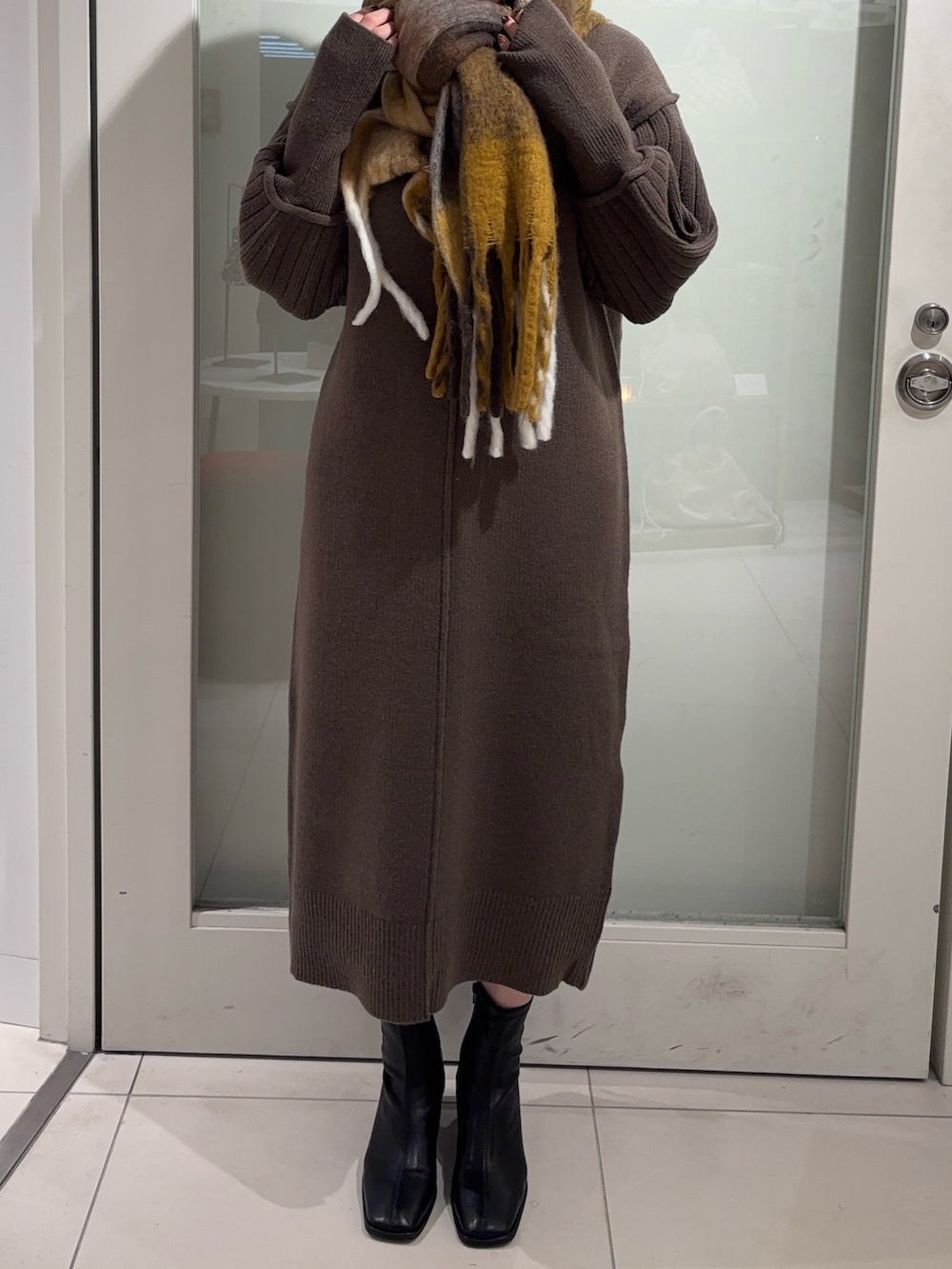 ニットワンピースにロングコートを合わせて綺麗めコーデを組んでみたした!