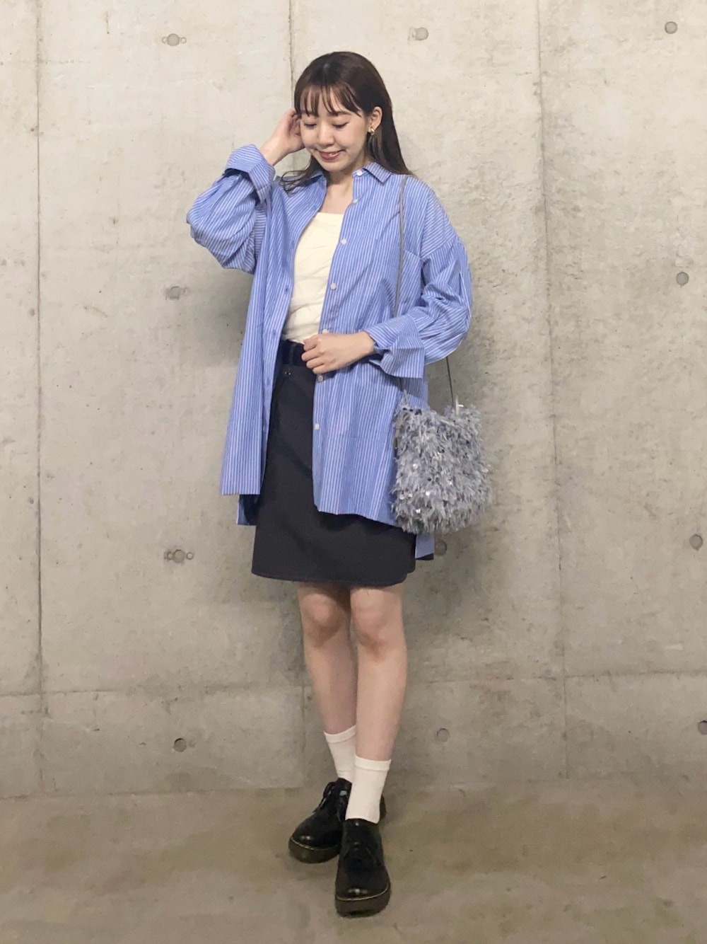 ルーズシルエットのシャツなど合わせると甘すぎずに着ることができます◎