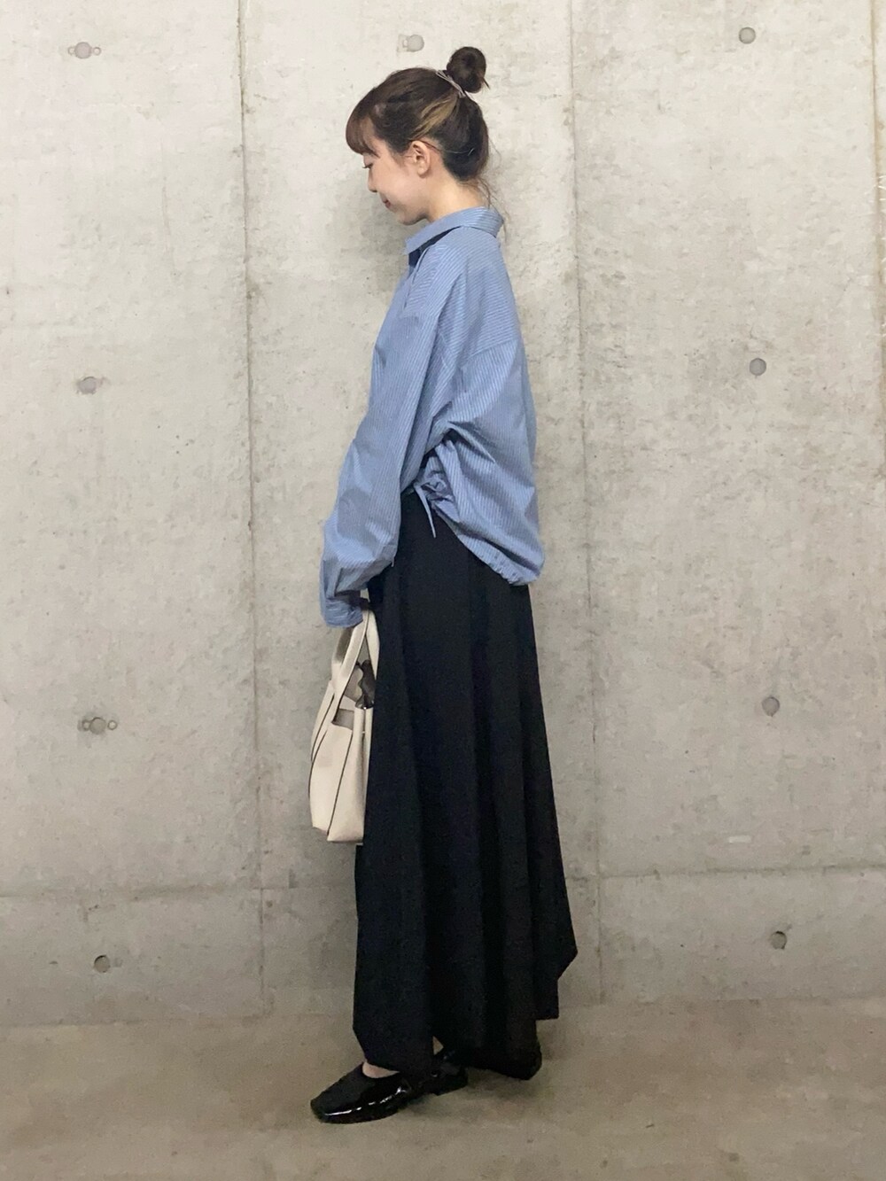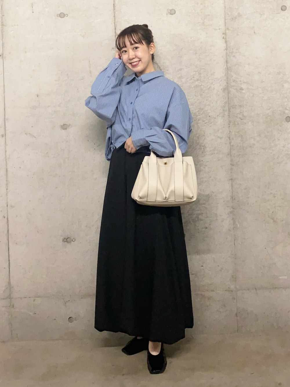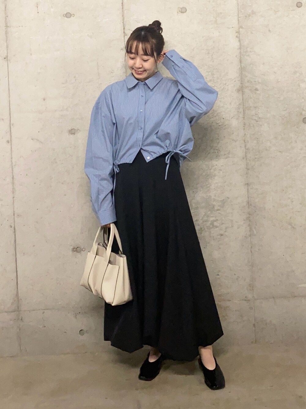 マットなカラーのシャツとバルーンスカートは相性バッチリです◎