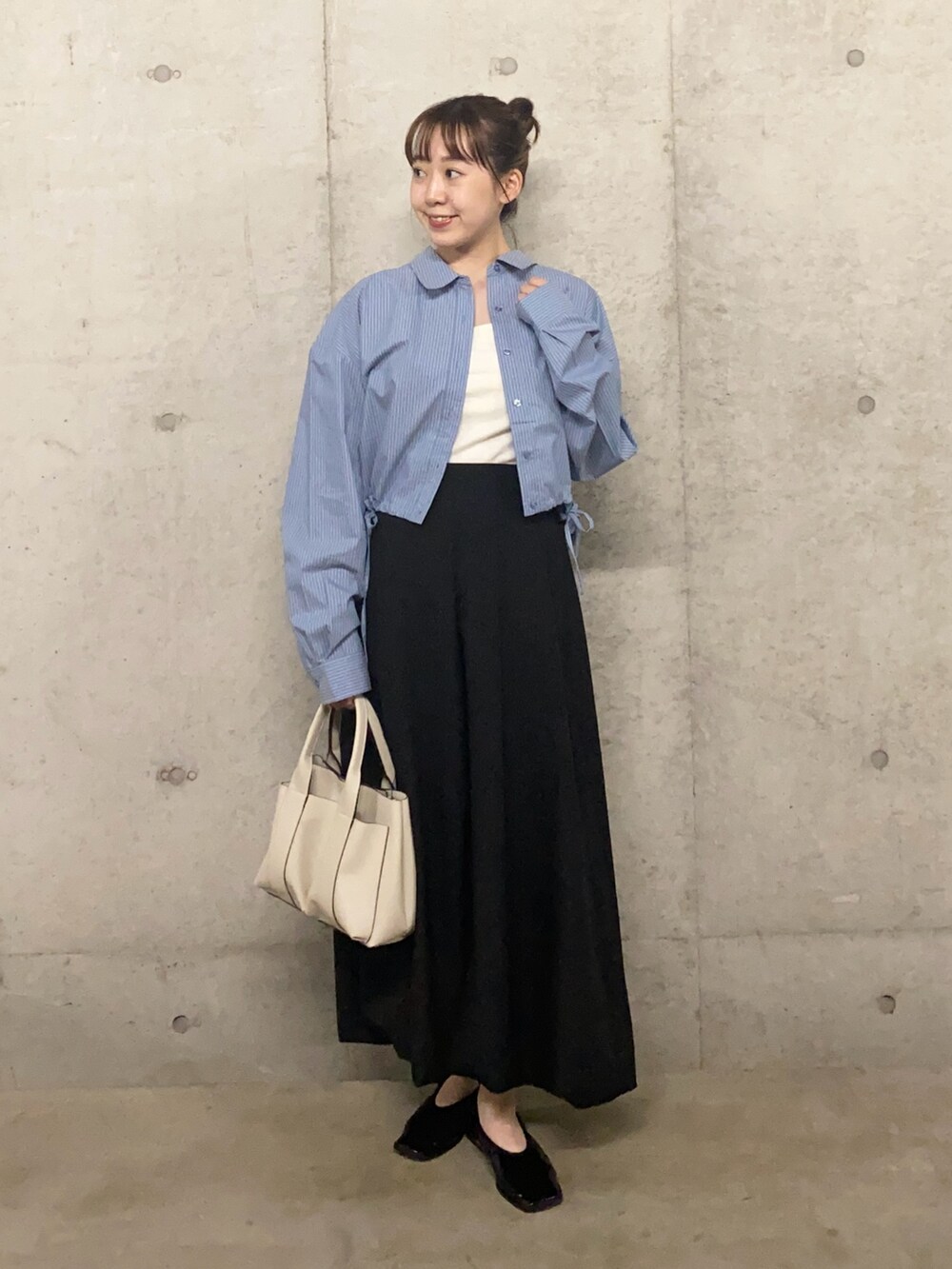 ふんわりと上品に広がるシルエットはトレンドのクロップド丈のトップスとよく合います◎