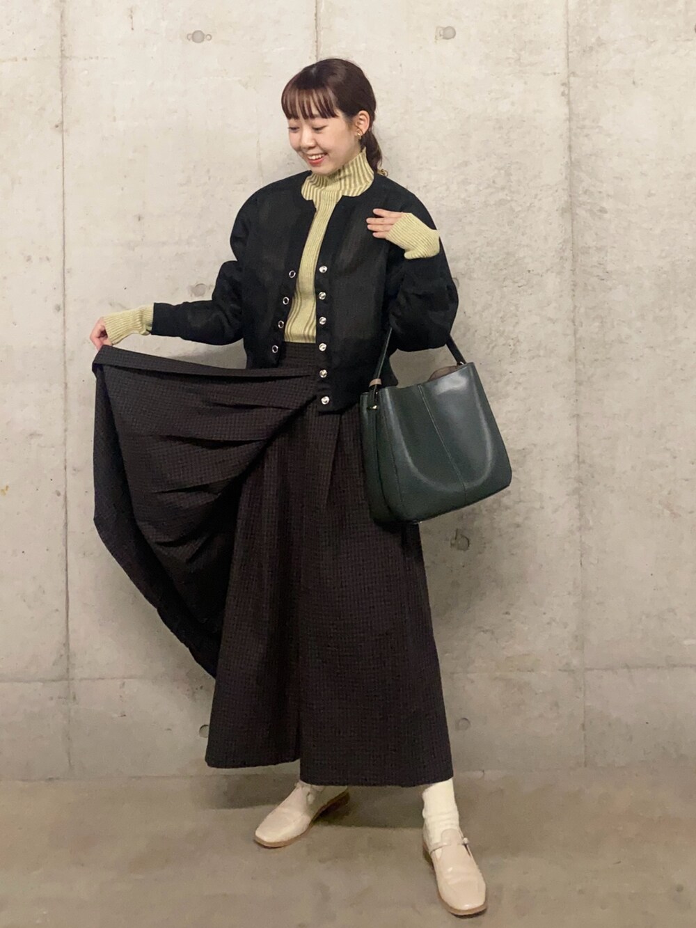 インナーはKBFのニットで、カスタードが可愛すぎる〜!!コーデを組む際、カラーを入れるか悩んでいたらびびっときました!