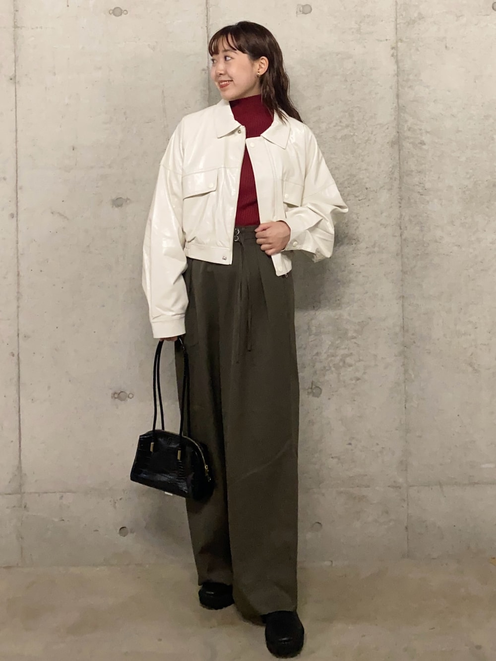 ブルゾンはクロップド丈なので、低身長でも身長盛れちゃいます😍スタイルアップ効果もばっちりです!!