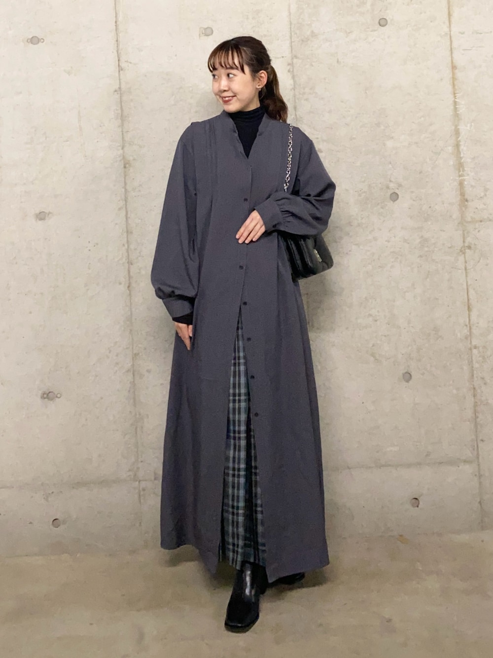こちらのワンピはShortサイズもあるので要チェック🙆♀️💕襟はスキッパータイプのシャツワンピは着回し力抜群で、レイヤードを楽しみたい方におすすめです✨️