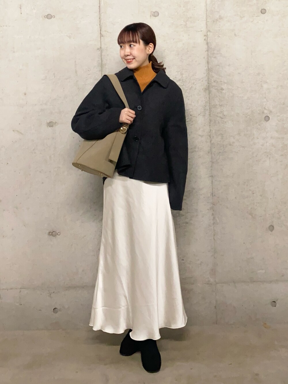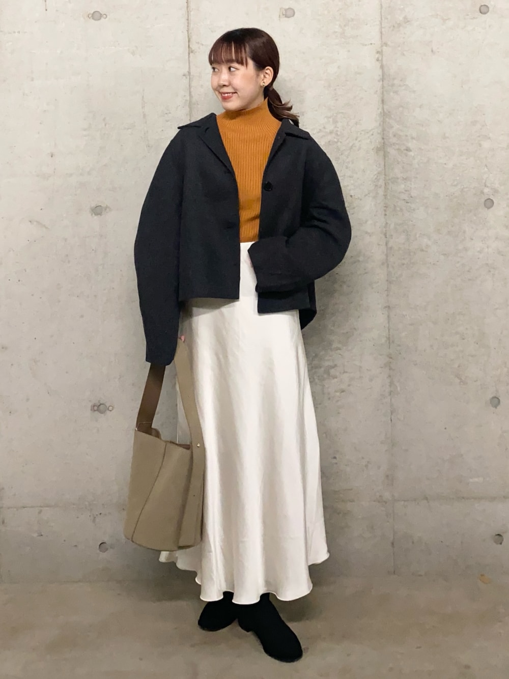 アウターのころんとした襟はハイネックニットと相性バッチリです〜!!