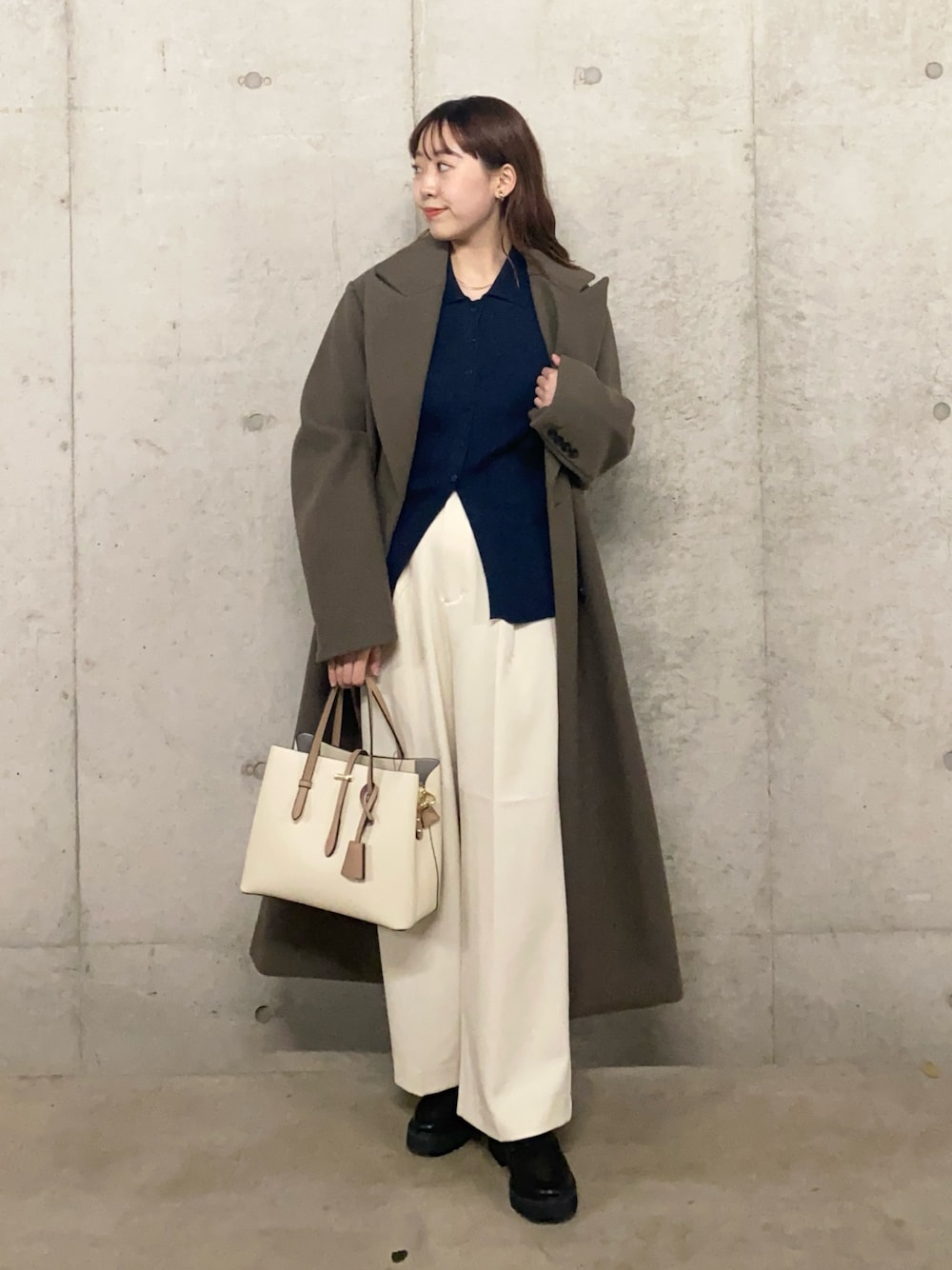 コートの下にはポローカーディガンを仕込んでおります〜!コートからチラ見せさせることが可愛い形が際立ちます🥹❤️腰周りもカバーしてくれるロング丈とサイドタックがおしゃれです🙆♀️